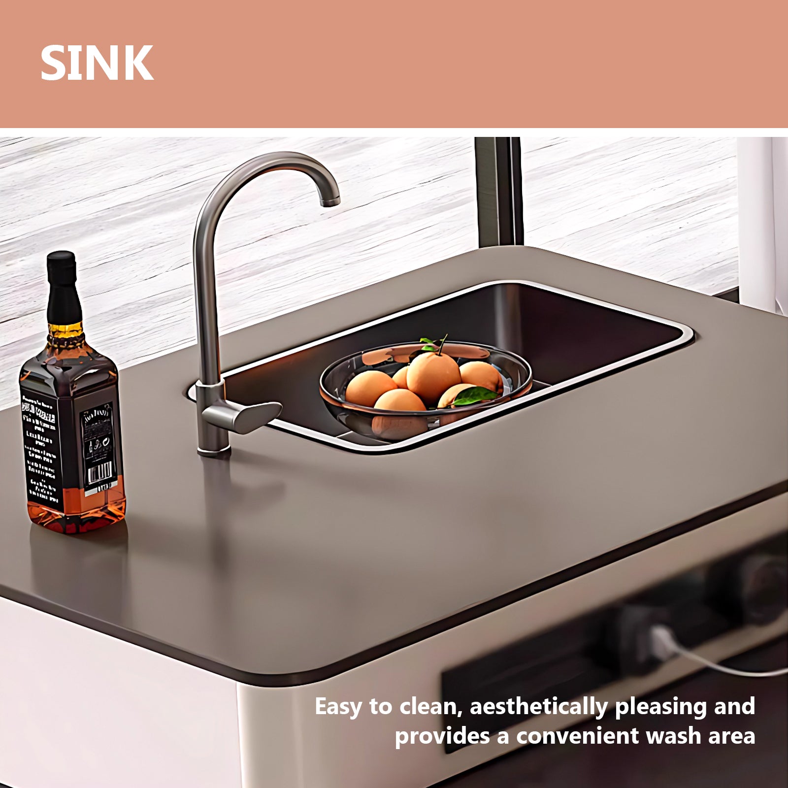 Integrated Slate Sink:This integrated design avoids the gap between the sink and the countertop, and the sink and the island platform are perfectly integrated, which improves the overall practicality of the kitchen