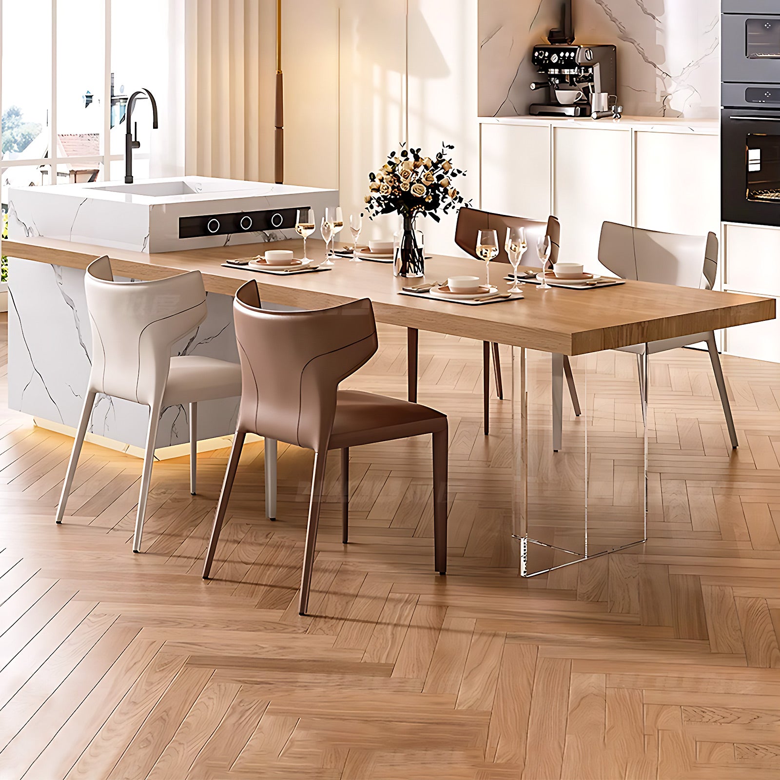 Unique Texture Design: This island style dining table features a unique texture style, with a white textured surface that complements the sturdy solid wood dining table. The elegance of the white transparent table legs enhances its modern aesthetics