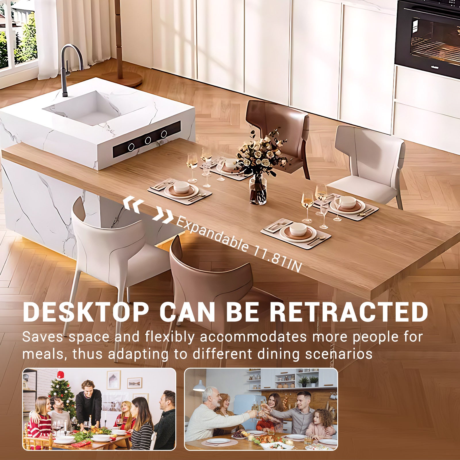 Scalable Design: This dining table features an expandable design that allows for flexible extension of its length by 30 centimeters. This adjustable table is perfect for hosting large family gatherings, ensuring everyone has enough space