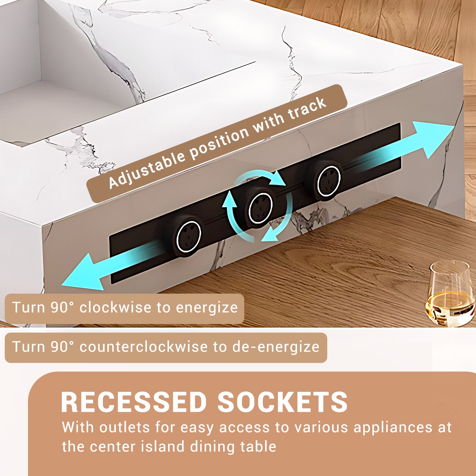 Exquisite Craftsmanship: The outer edge of the island and the top surface of the tabletop are made of sturdy stone slabs. The interior is made of practical and sturdy solid wood. The table legs are made of acrylic and have excellent load-bearing capacity