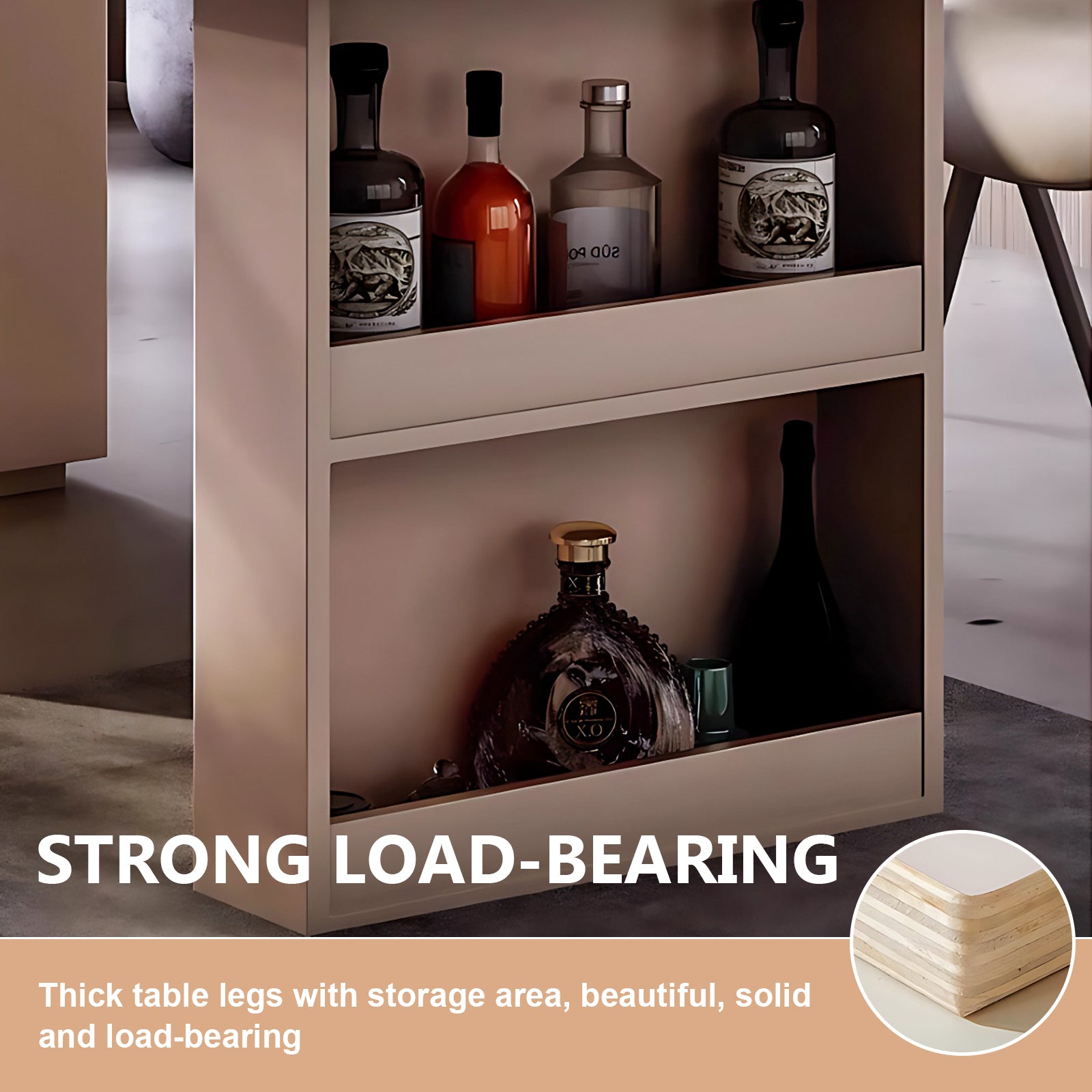 Large Storage Space: the island cabinet has a glass door cabinet to put tea sets, tableware and so on; the open storage design of the table legs can put the items you can take at hand