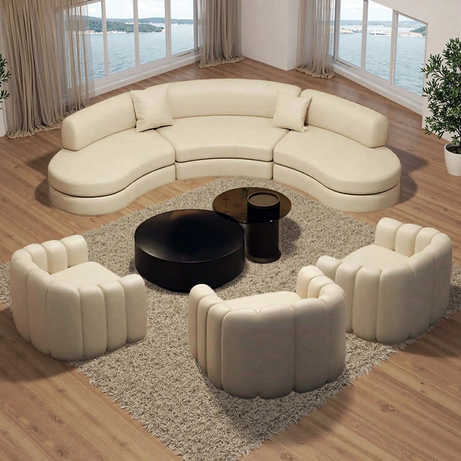 Stylish & Adaptable Curved Sectional Sofa Set:Elevate your space with this elegantly curved sectional sofa, available in five sizes and two modular configurations. Paired with a matching coffee table, it creates a seamless centerpiece—perfect for living rooms, lounges, or modern office spaces.
