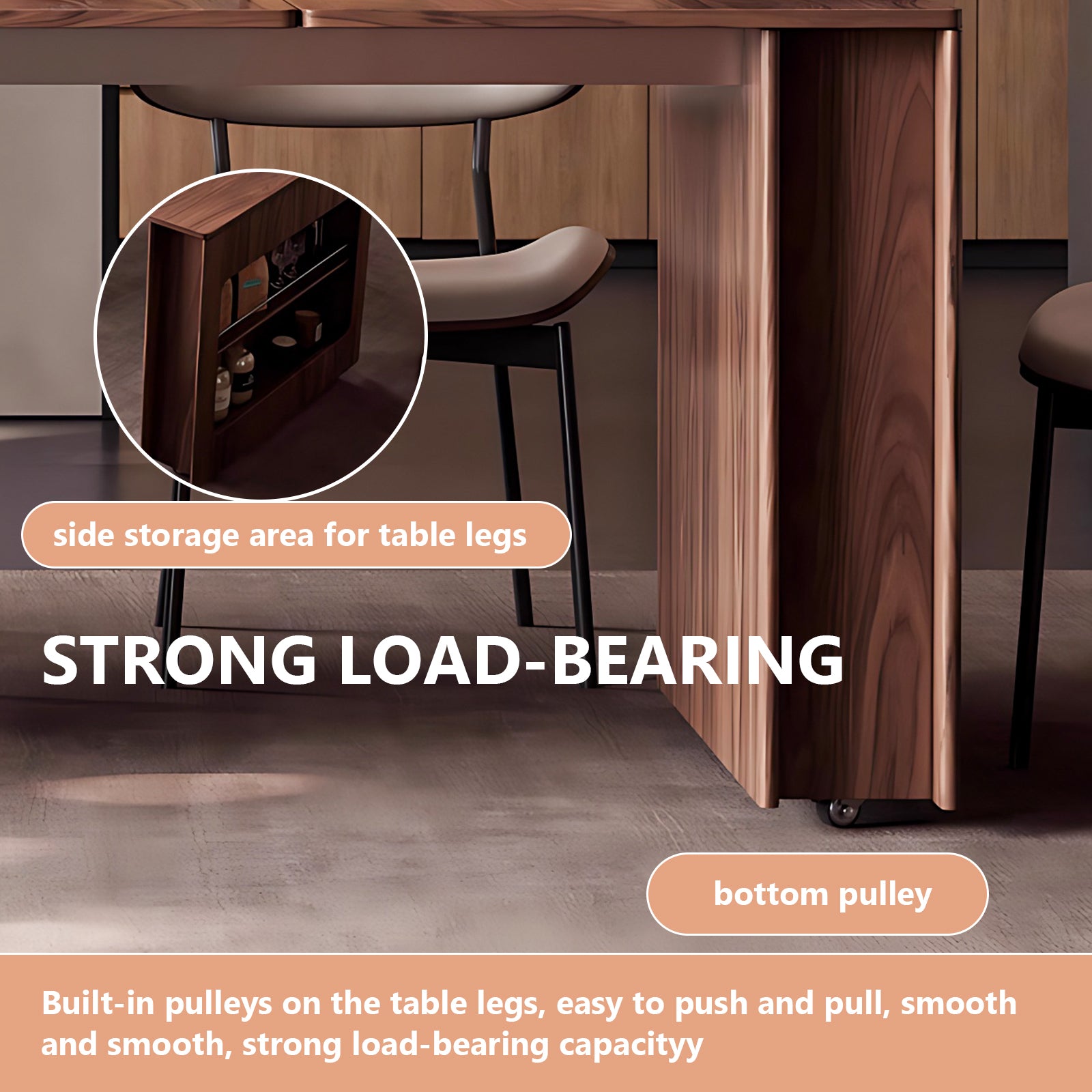 Retro Luxury Style: the island platform and the desktop are integrated, brown retro atmosphere, exquisite wood grain; the desktop can be folded and extended and placed according to your own wishes