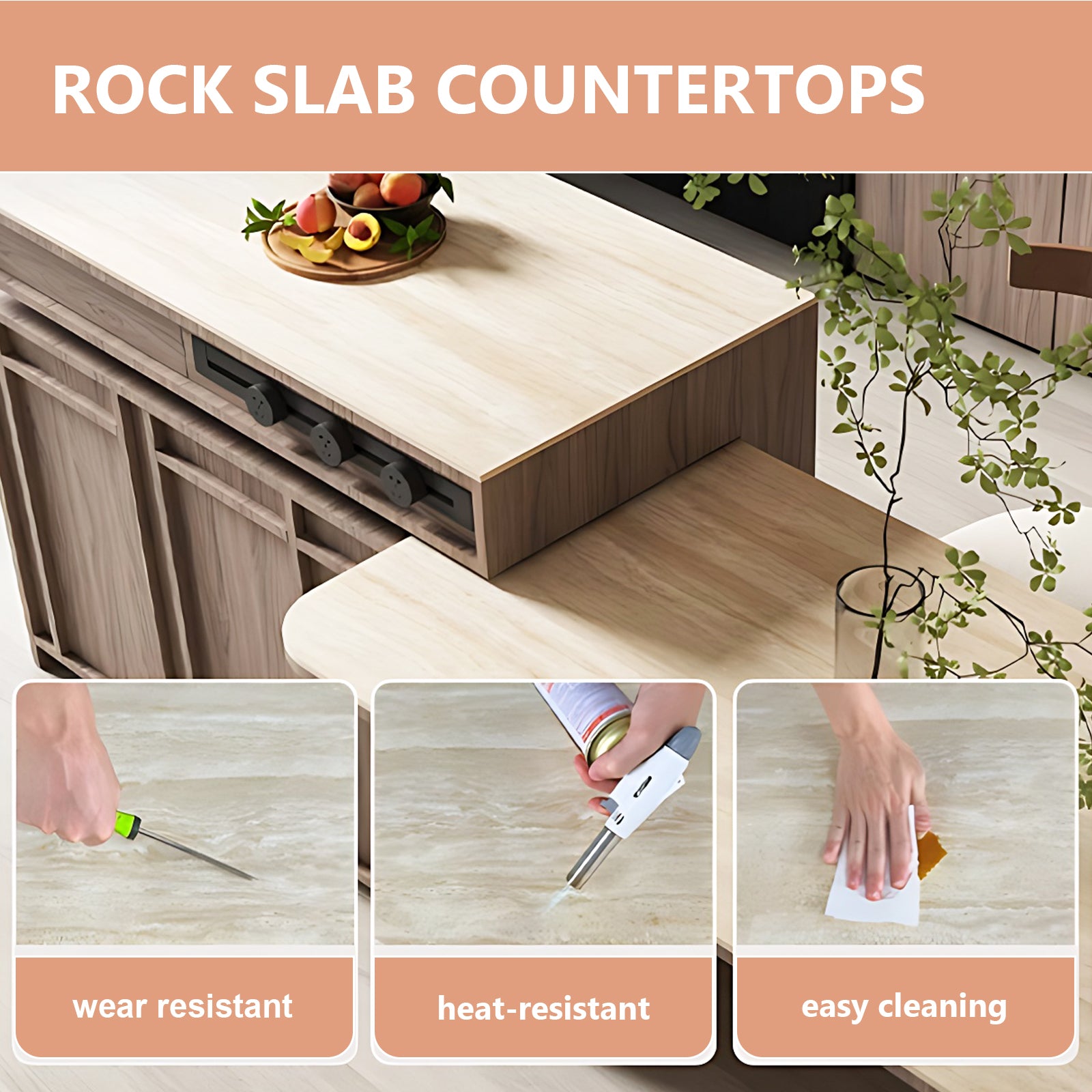 Sturdy and Durable Material: the table top is made of rock plate, which is extremely hard and not easy to deform; the cabinet and table legs are all made of wood, which has good bearing capacity;the pulley is smooth and durable