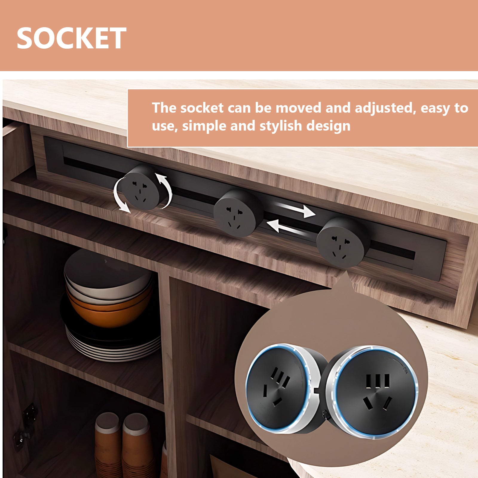 Sliding Rail Socket:It breaks the limitation of the traditional fixed position of the socket, and the position of the socket can be flexibly adjusted through the slide rail, which is convenient for using electrical appliances