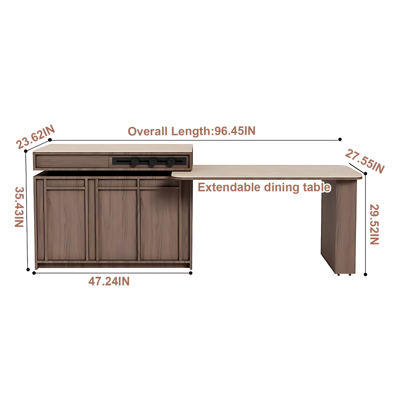 Aihm-Lon Kitchen Island with Rolling Extendable Table 96.45"