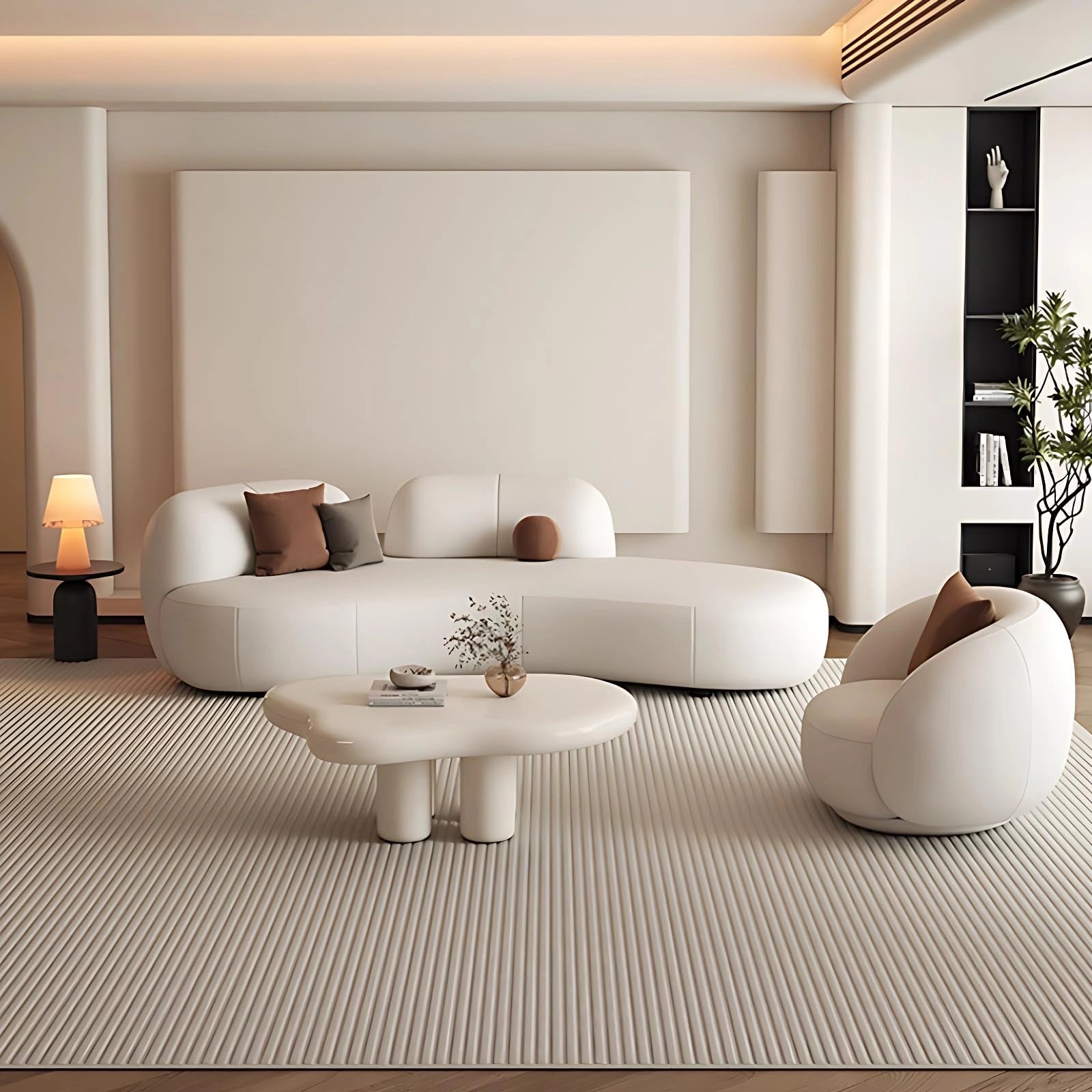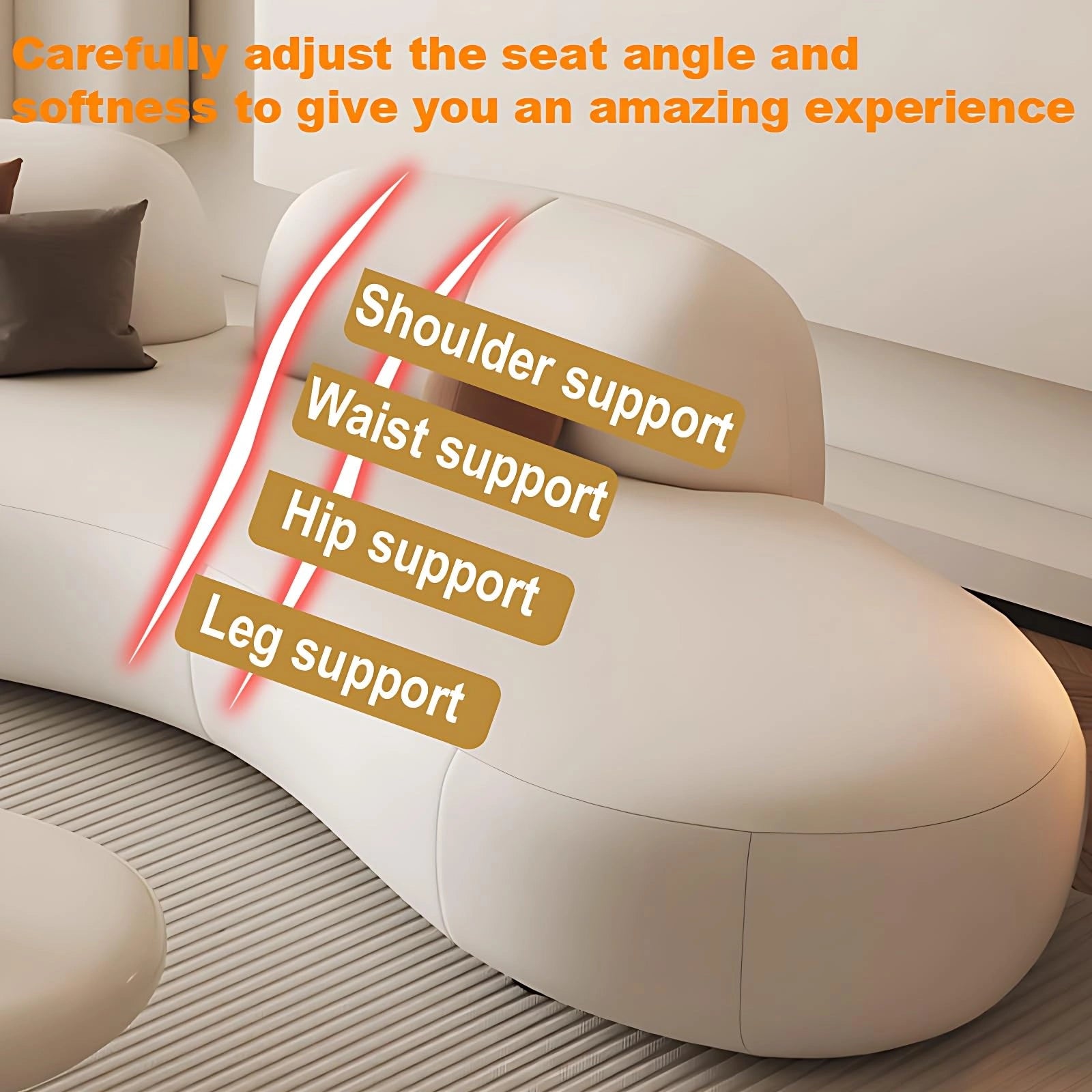 Ergonomic Curved Comfort: Experience sublime relaxation with the sofa’s fluid silhouette. The gently curved backrest cradles your waist and hips with tailored support, blending ergonomic innovation with striking modern design.