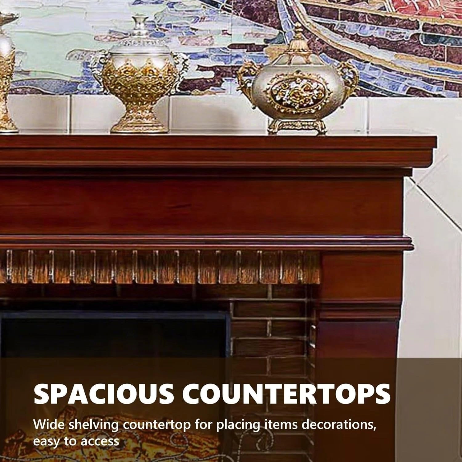 Spacious Countertop: The spacious countertop can be used to store everyday small items, such as loose coins or mobile phone chargers, for easy access. It can also be transformed into an attractive display area for small sculptures and scented candles