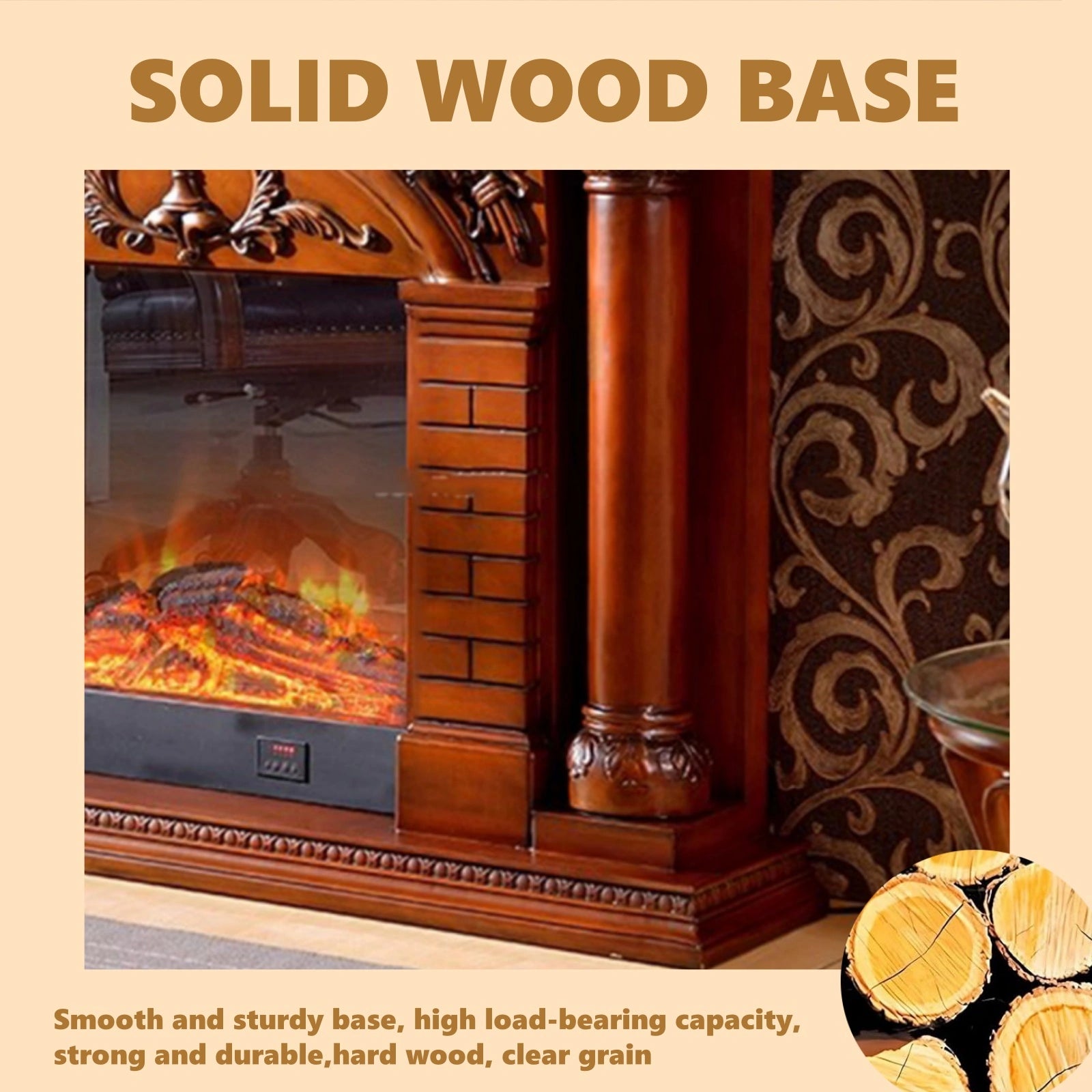 Premium Materials: The warm texture of solid wood balances the ornate carvings, giving the fireplace a grand yet natural feel. The solid wood frame provides sturdy support for the entire structure, maintaining its elegant form even after years of use