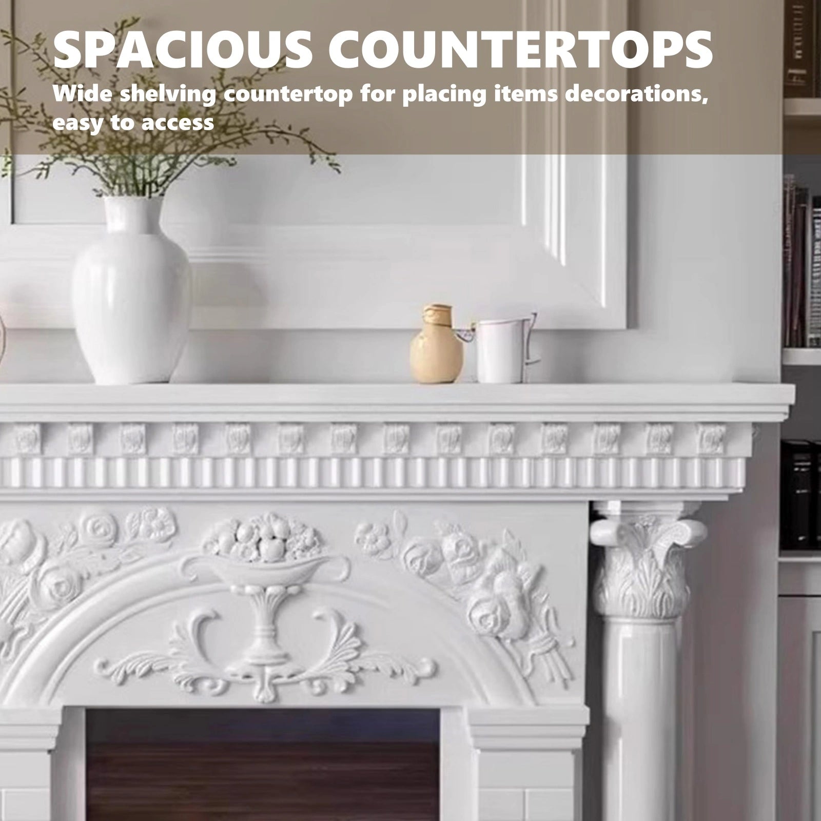 Spacious Countertop: The large countertop is like a stage, where you can neatly display vintage ornaments and create a cosy corner for everyday use by placing scented candles and photo frames on it, blending the palace style with your living space