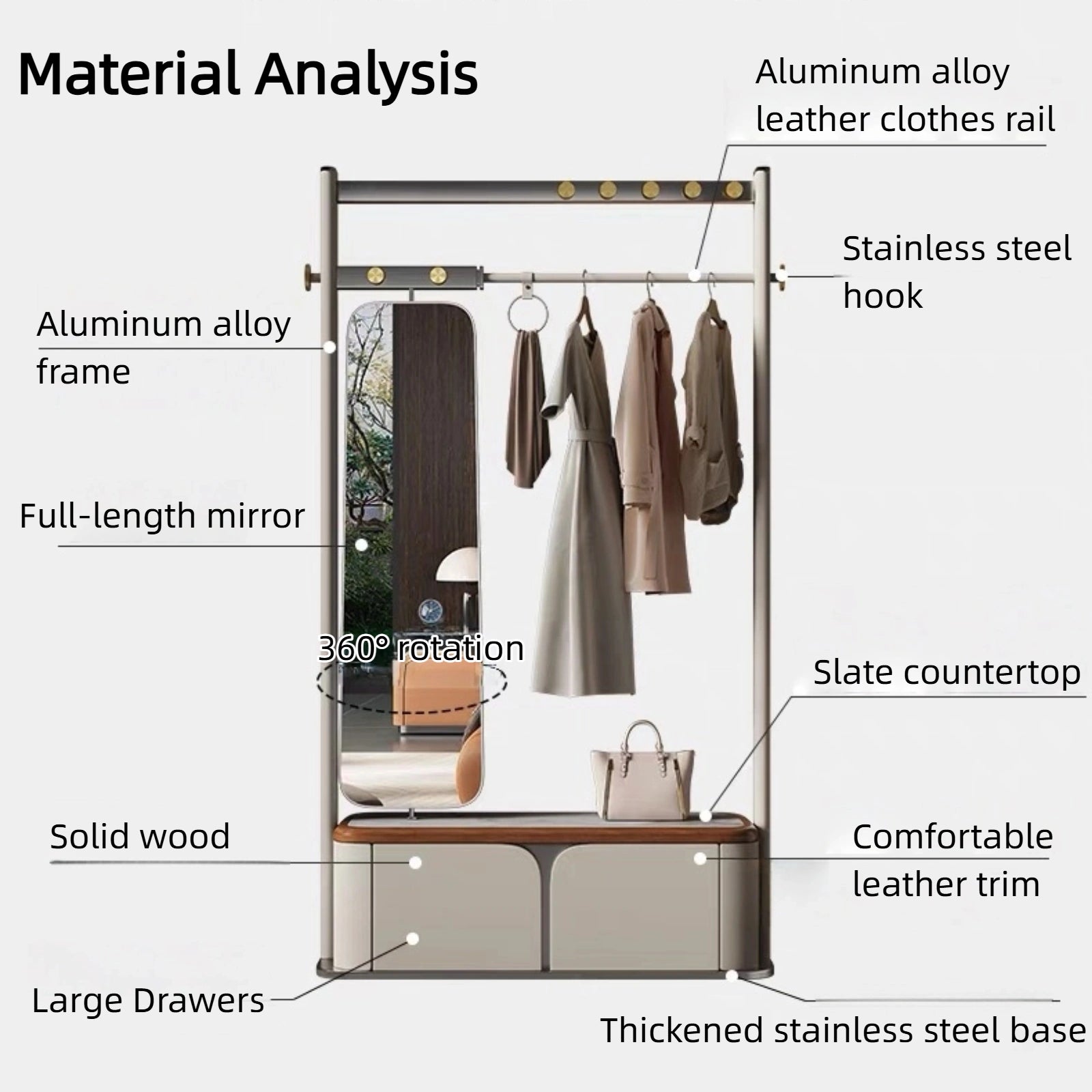 Rotable Mirror: Comes with an integrated dressing mirror that can rotate 360 degrees. This allows you to check your outfit from all angles effortlessly, adding great convenience to your daily dressing routine
