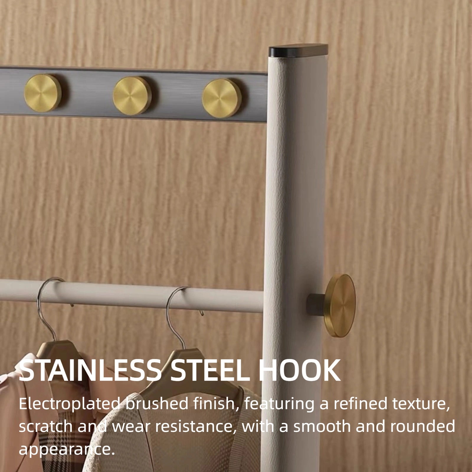 Double-Layer Hanging Rod: Equipped with a double-layer hanging rod at a height of 51.18 inches, it comes with smooth stainless steel hooks. This design provides ample space for hanging various clothes, making it easy to organize and access your wardrobe