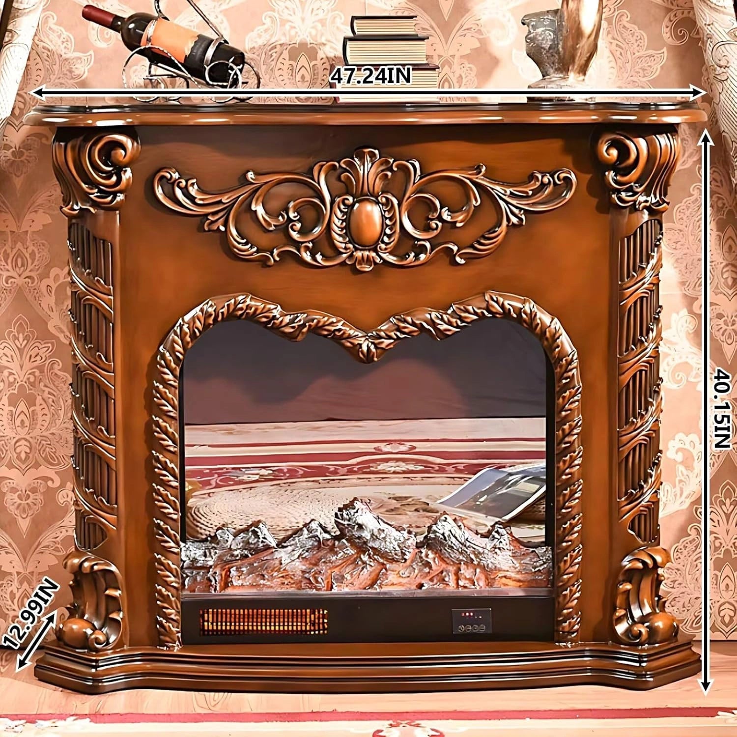 Aihm-Lon Electric Fireplace Includes Swirling Texture Design with Floral Pattern 47”