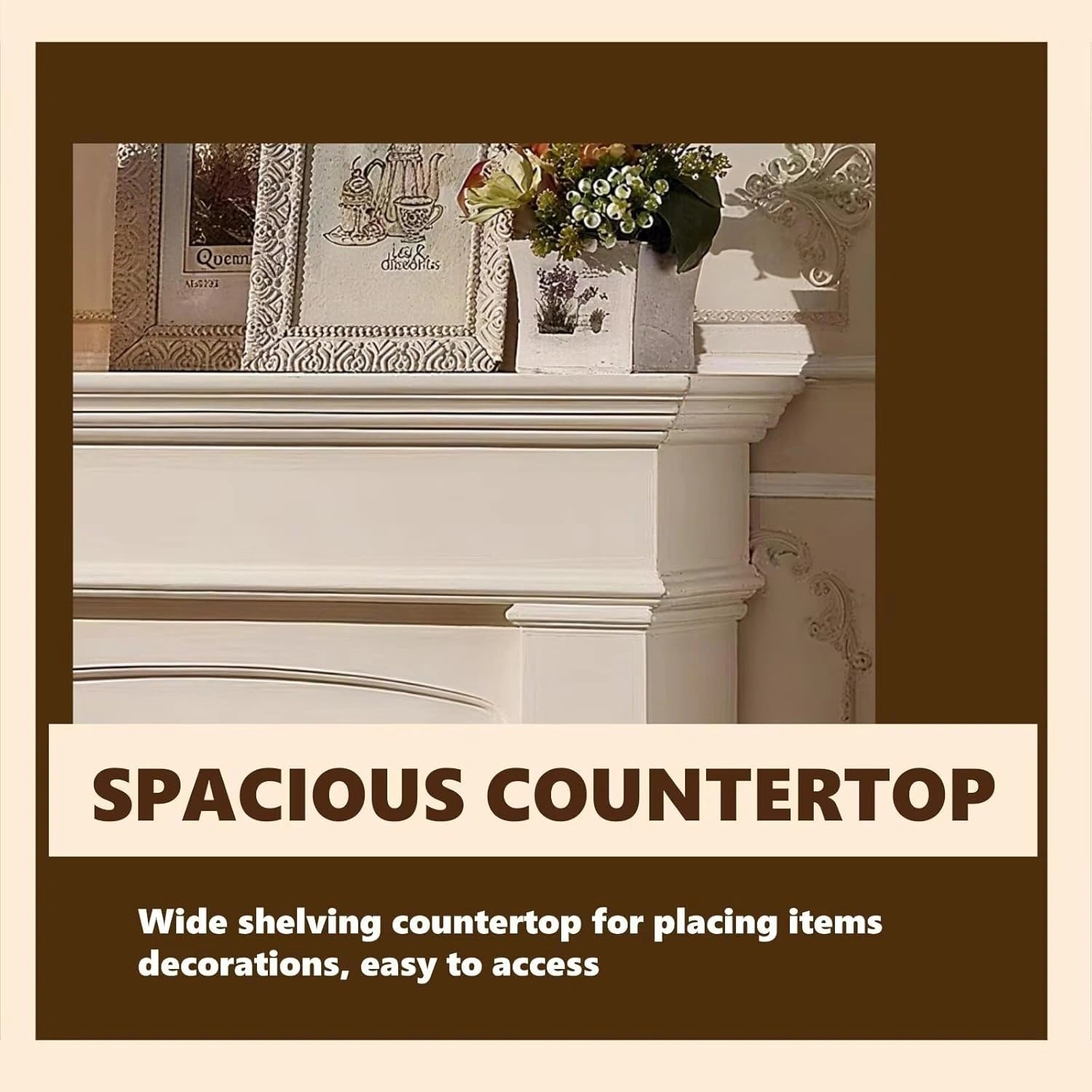 Spacious Countertop: it has a spacious countertop where you can place storage boxes for small items, making them easy to find and convenient to access. You can also place some green plants on it, which not only freshen the air but also lift your spirits
