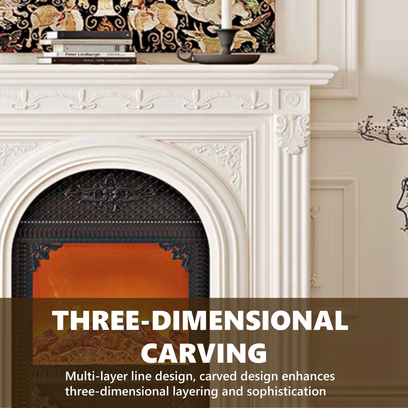 French Classical Style: with a white frame as the base, paired with vintage exquisite carvings, simulated flames create an elegant, nostalgic and warm artistic atmosphere, blending the romance of the French court with the warmth of a lit fireplace