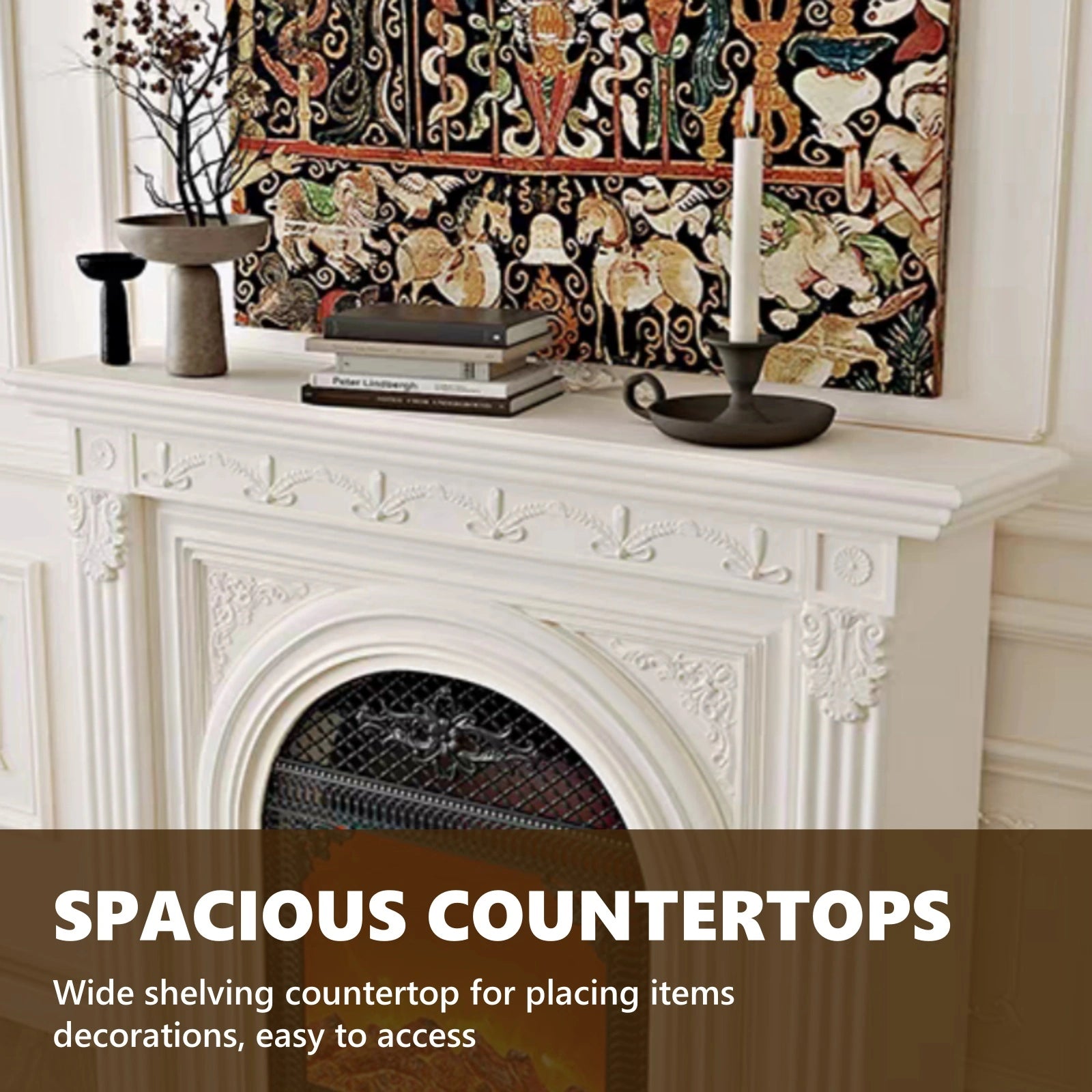 Spacious Countertop: the countertop of the fireplace can be used to store small items such as keys, making them easy to access. It can also be used to display decorative items such as plants, vases, helping to cultivate good taste