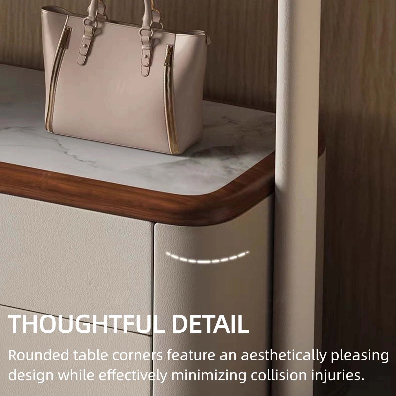 Thoughtful Details: Rounded edges effectively minimize collision damage while lending a soft, elegant aesthetic to the overall design. Paired with a hidden handle design, it achieves both sophistication and visual appeal