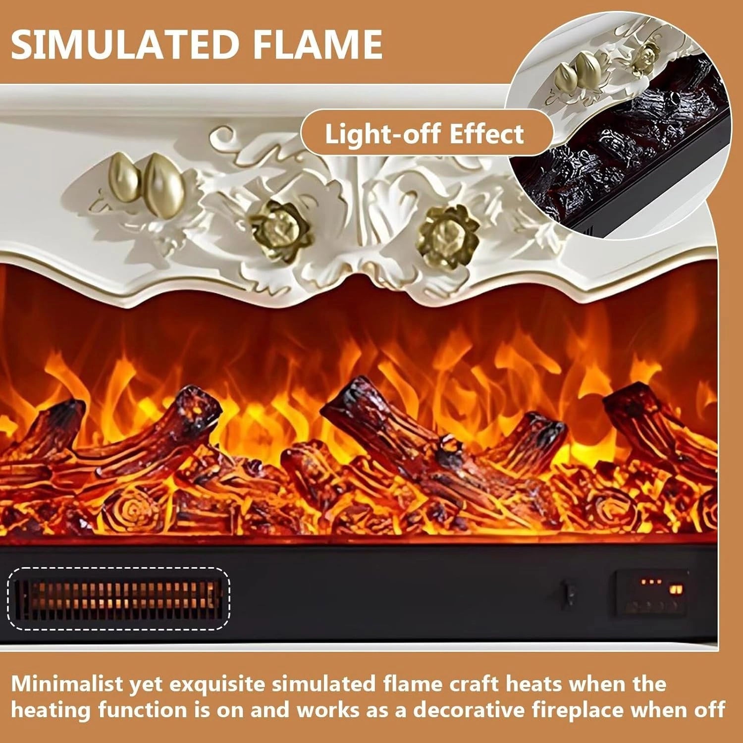 Realistic Flame Effects & Heating: Equipped with a heating function, turn it on during cold seasons to enjoy cozy warmth. During warmer months, you can still enjoy the decorative flames with the heating function turned off, adding a unique visual charm