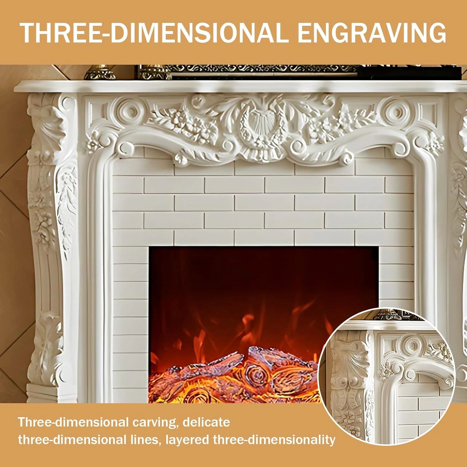 Decorative Stove Core: Made of resin-based imitation carbon material, it has a realistic simulated flame effect. Although it does not have a heating function, it has a unique decorative charm
