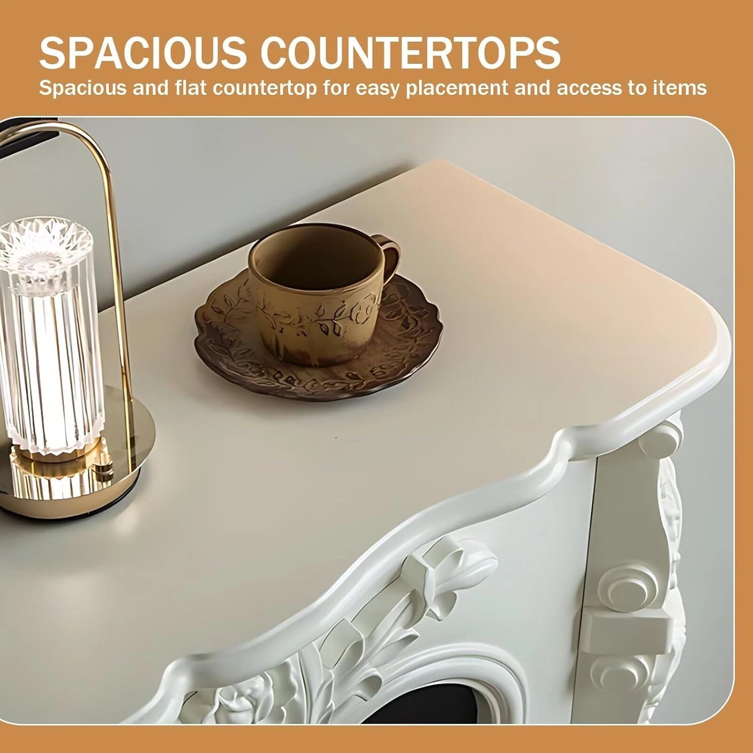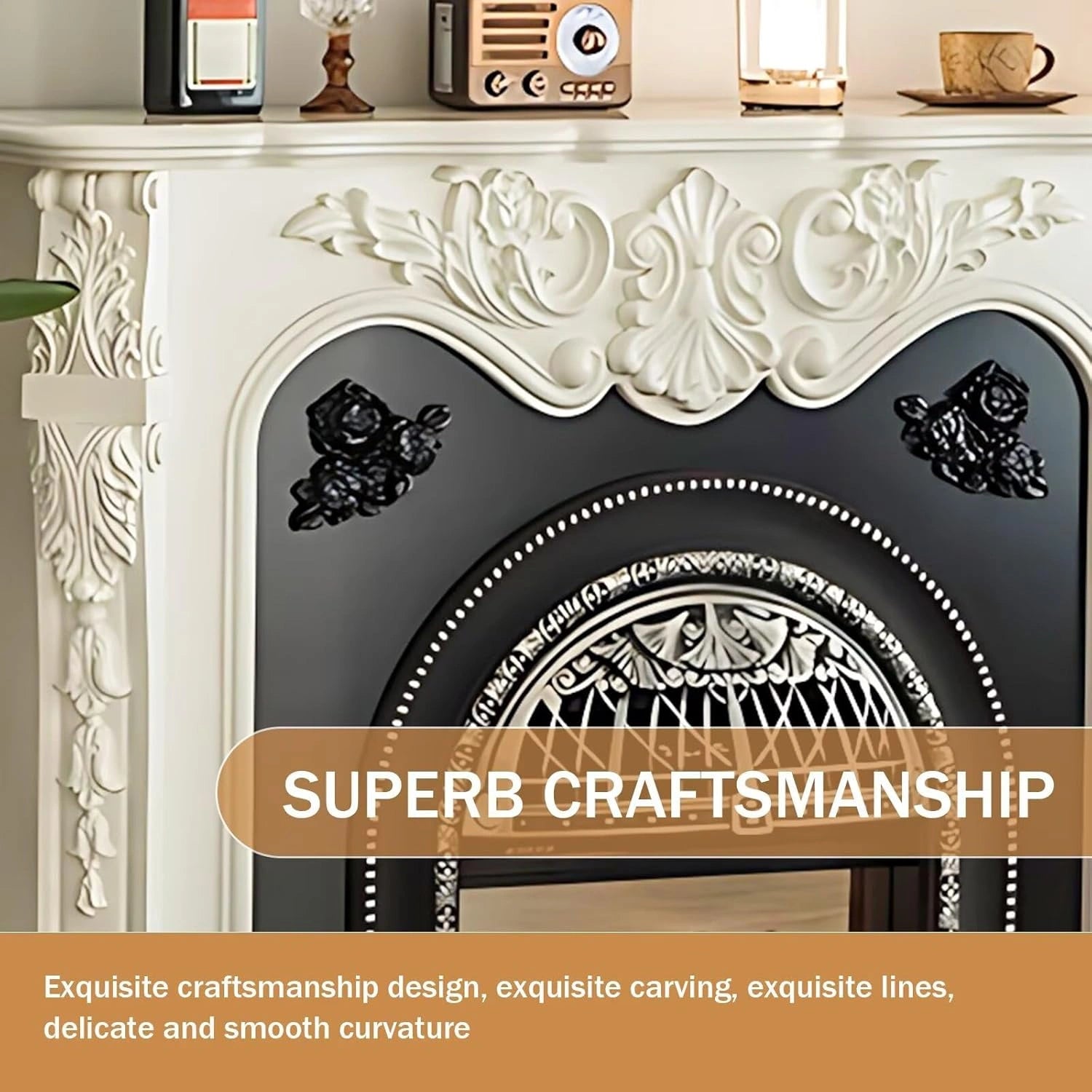 Multi-layered Line Art: The fireplace is meticulously carved, layer by layer, carefully enhancing its three-dimensional sense and exquisite details. It cleverly maintains the delicate balance of curves, harmoniously combining strength and elegance