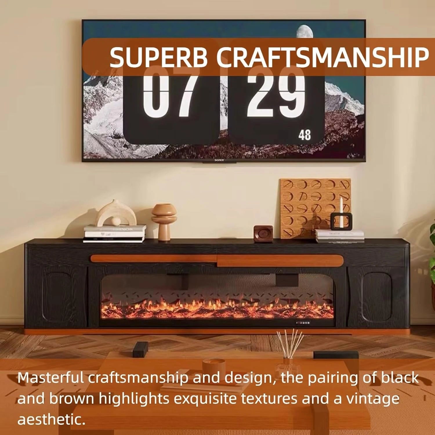 Retro Elegant Design: Blends black and brown tones to create a charming retro vibe. The integrated design of the TV cabinet and electric fireplace not only saves space but also adds a touch of sophistication to your living room