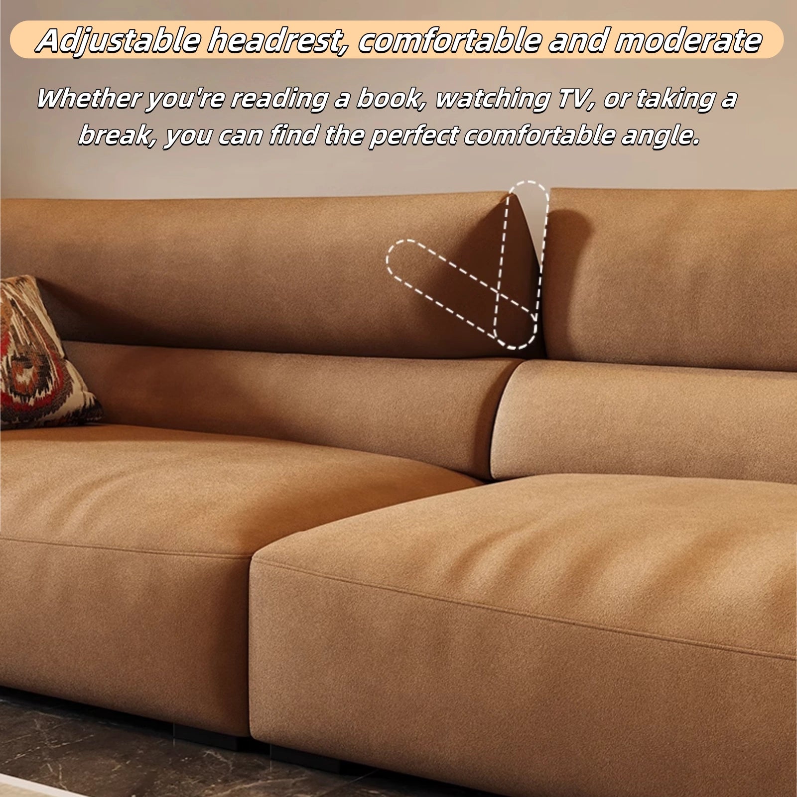 Adjustable headrest: The ergonomic adjustable headrest offers just the right amount of comfort, allowing you to easily find your desired angle with a simple push. This sofa is perfect for accommodating different sitting postures and catering to the varying heights of family and friends, making it a true treasure of a sofa. Whether you're reading, watching TV, or taking a quick nap, you can always find the perfect comfortable angle.