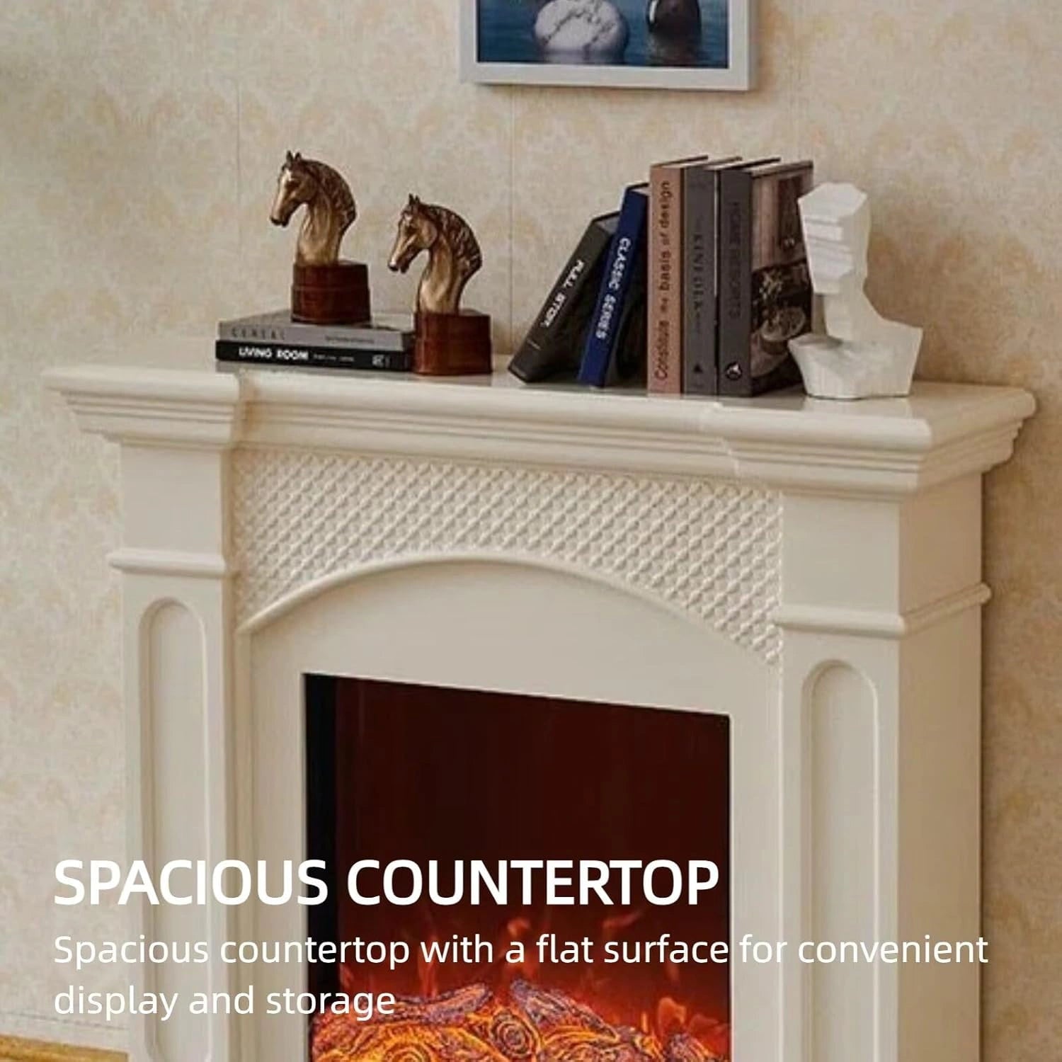 Spacious Display Countertop: The large, flat mantel provides ample space for holiday decorations and stylish displays, combining beauty and practicality. The smooth finish is dust-resistant and easy to clean.