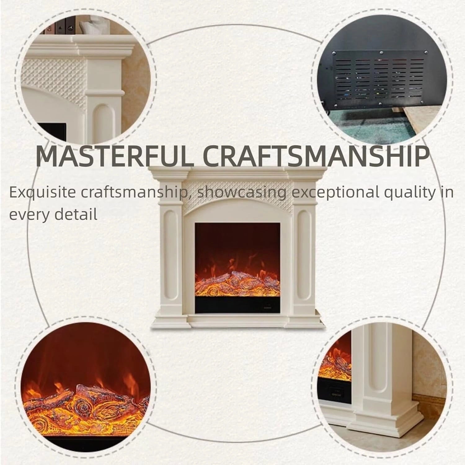 Solid Wood Base: Crafted with a sturdy solid wood frame, this electric fireplace offers excellent durability and strength.