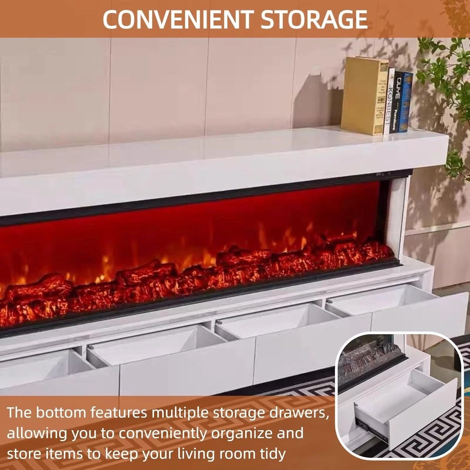 Convenient Storage: Features four drawers at the bottom, offering ample space to organize and store your items, helping you keep your living room neat and tidy with ease
