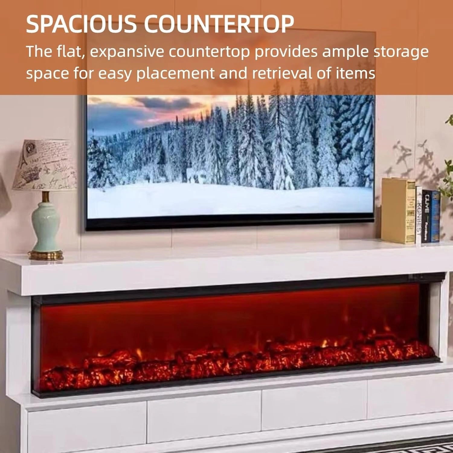 2-in-1 Design: Combines a fireplace and TV stand, bringing you dual enjoyment in one piece. Its modern minimalist style features clean shapes and smooth lines, fitting well into various living room decors