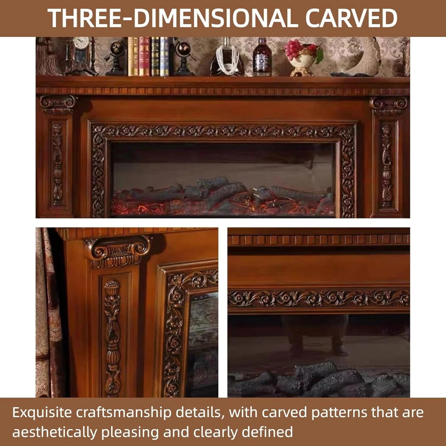 Aihm-Lon Vintage Electric Fireplace with Brown Floral Relief 79”