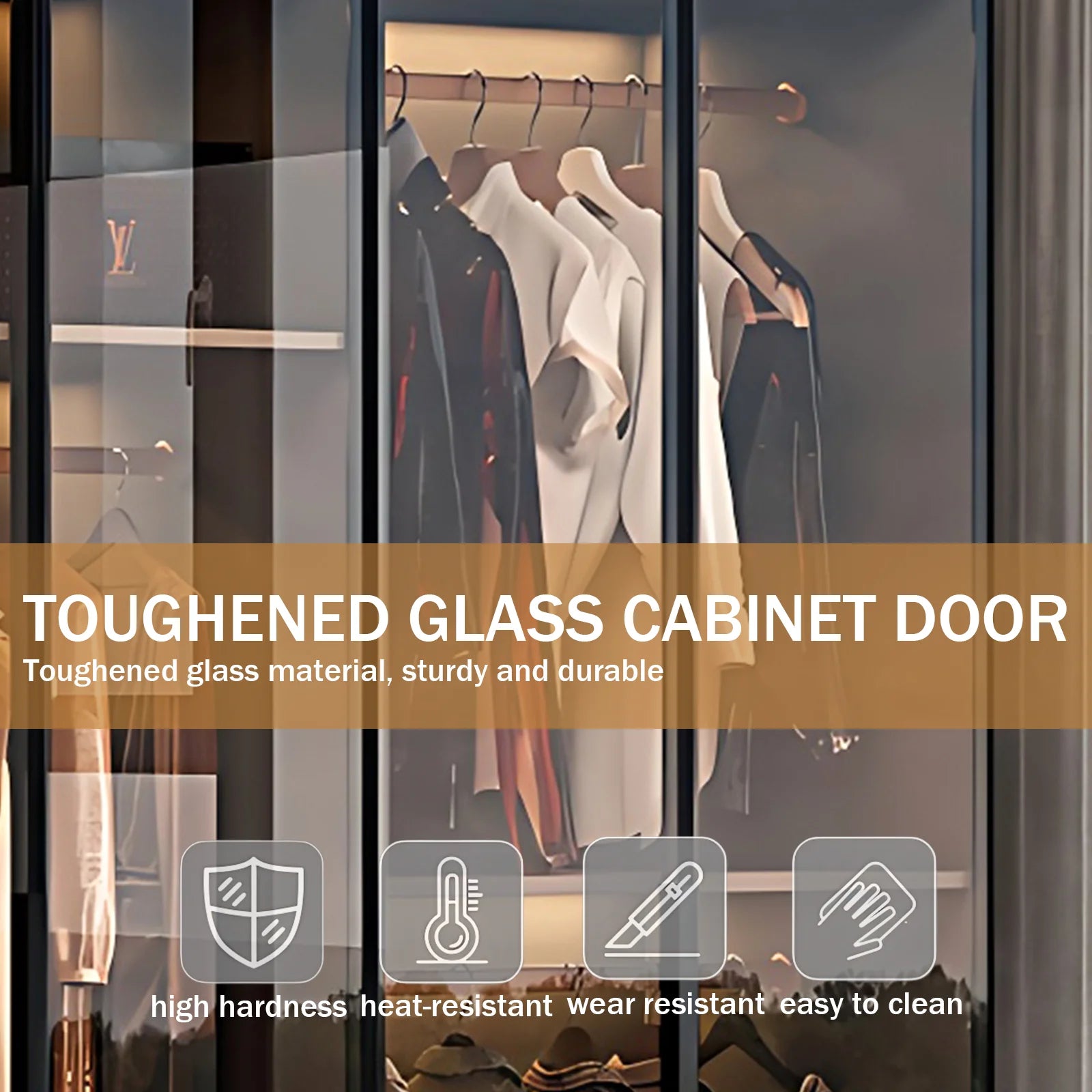 Fashion-Forward Functionality: Seamlessly blends practicality with style: industrial-chic glass doors, ergonomic hanging space, and integrated storage solutions adapt to any modern home effortlessly.