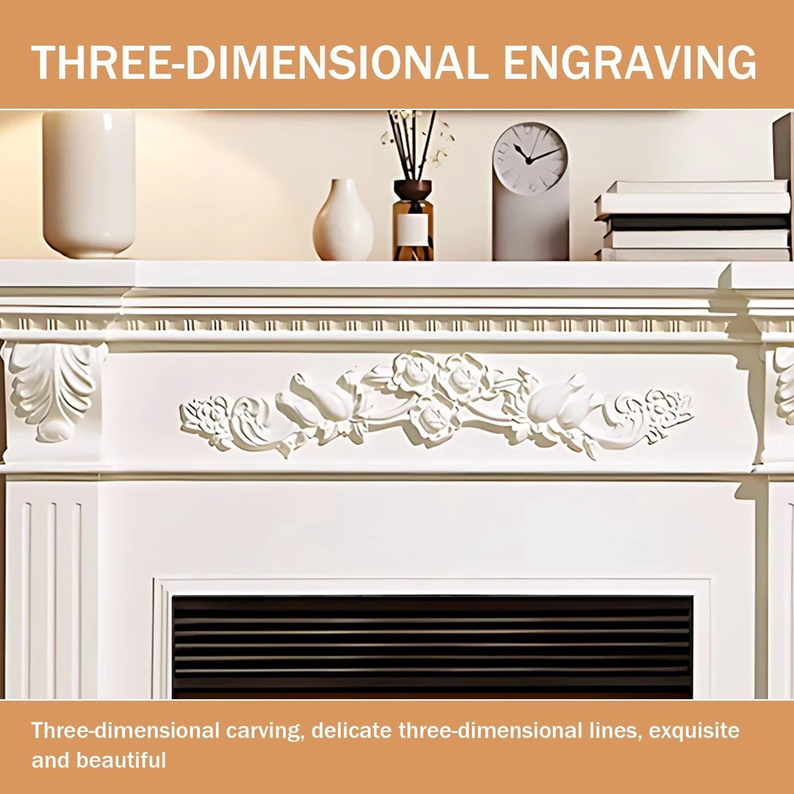Unique Appearance Design: The upper part is carved by craftsmen, which is particularly exquisite; at the same time, the two sides of the fireplace are embedded with stripes, which highlights the modernity