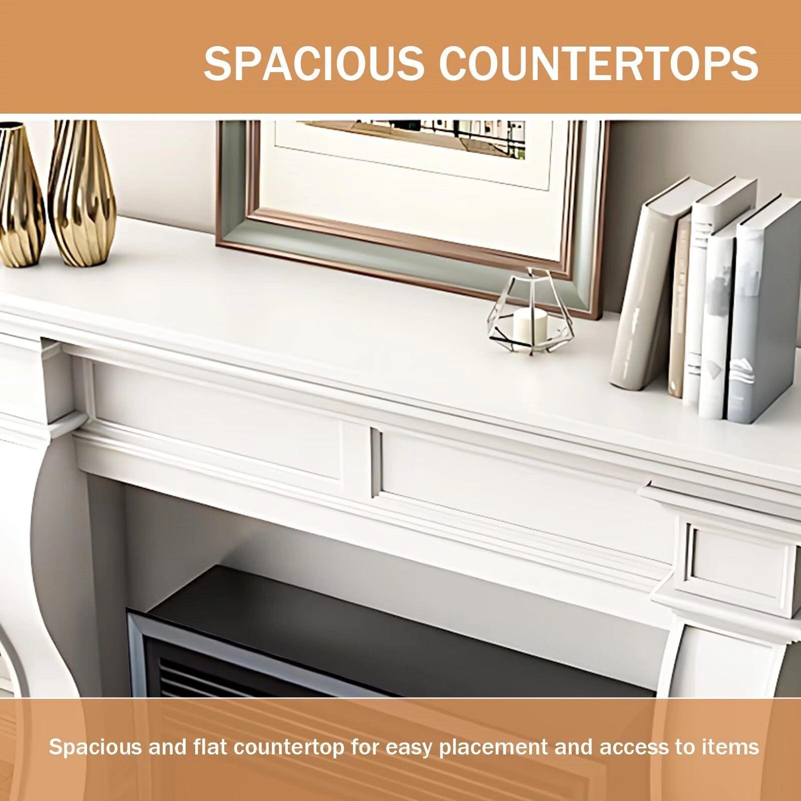 Exquisite and Practical Design: The countertop provides an elegant display platform for carefully selected decorations, and the mantel can be removed and used only as storage space. This product is equipped with a convenient remote control function