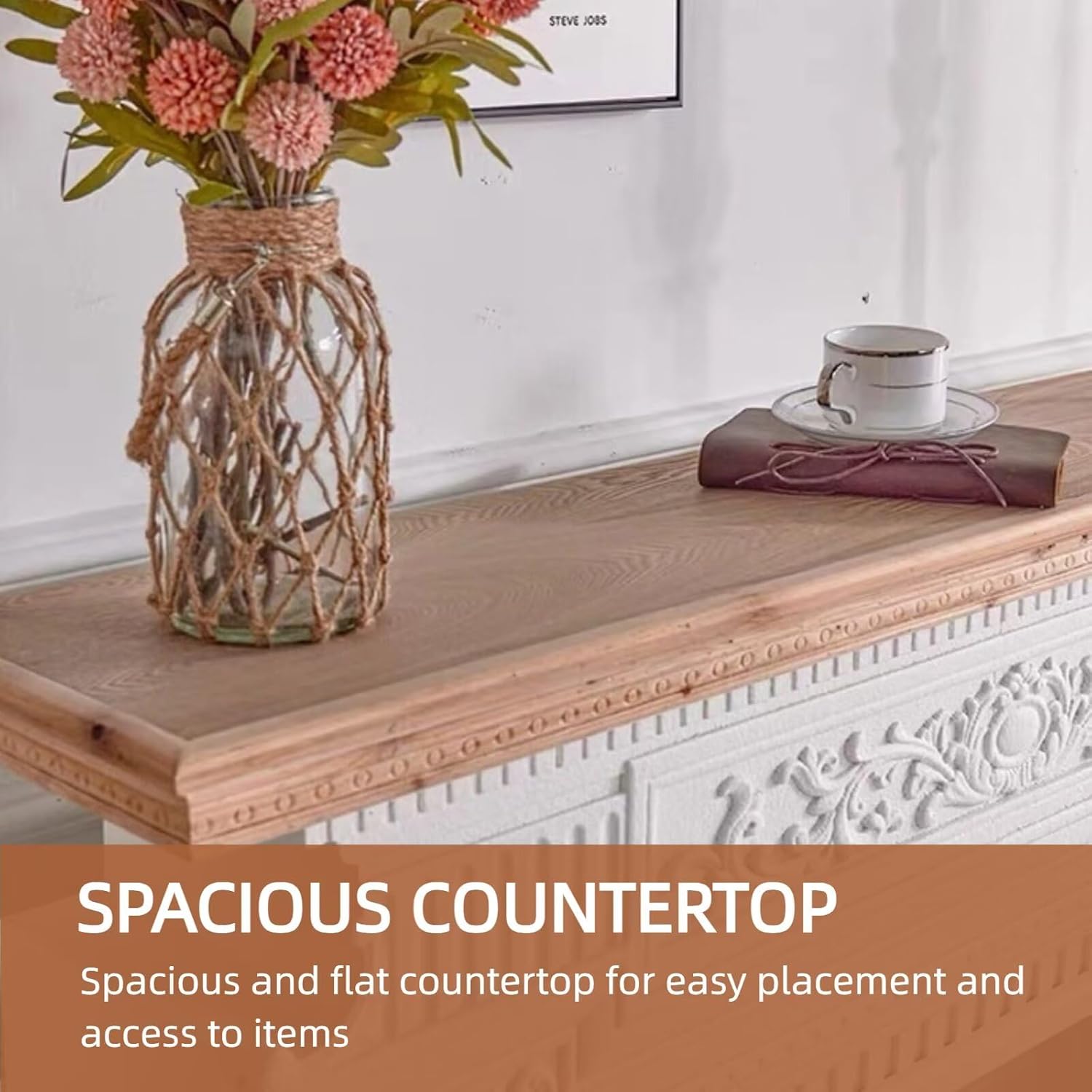 Spacious Storage Countertop: Comes with a roomy countertop that can hold various items. Whether it's candles, vases, or other decorative pieces, this ample space allows you to personalize your area and keep your favorite things within easy reach