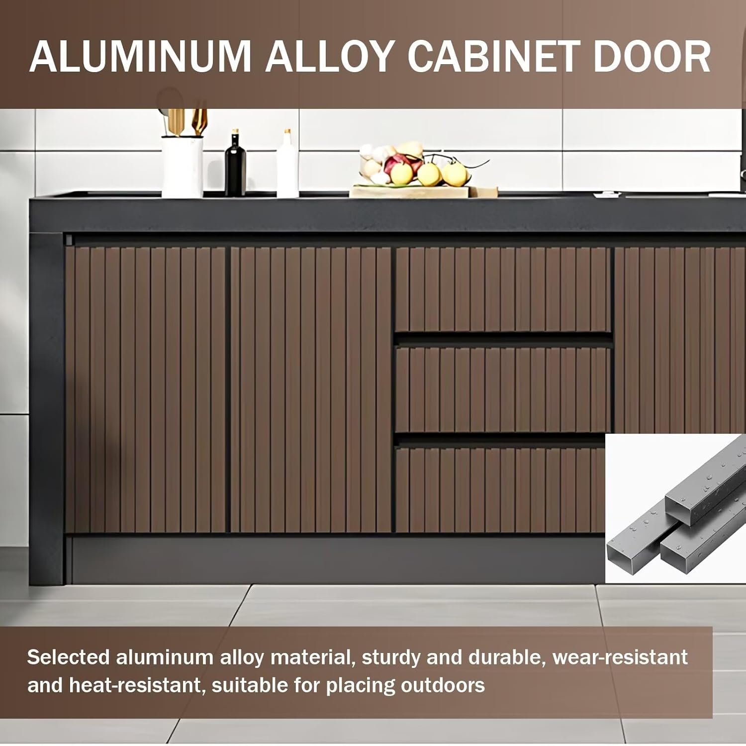Modern Minimalist Style: the brown striped cabinets are modern and elegant; the lines of the cabinet doors are beautiful and unique,with smooth and simple lines, which enhances the style of the overall outdoor space