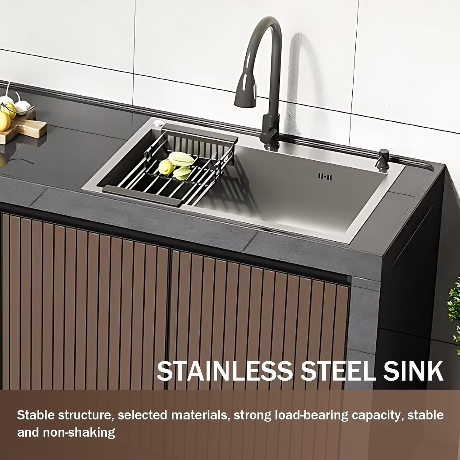 Stainless Steel Sink: the surface of stainless steel is smooth, which saves time and effort when cleaning; can withstand greater pressure and is not easy to be damaged;the tap water is smooth and It is more convenient to deepen and thicken the sink