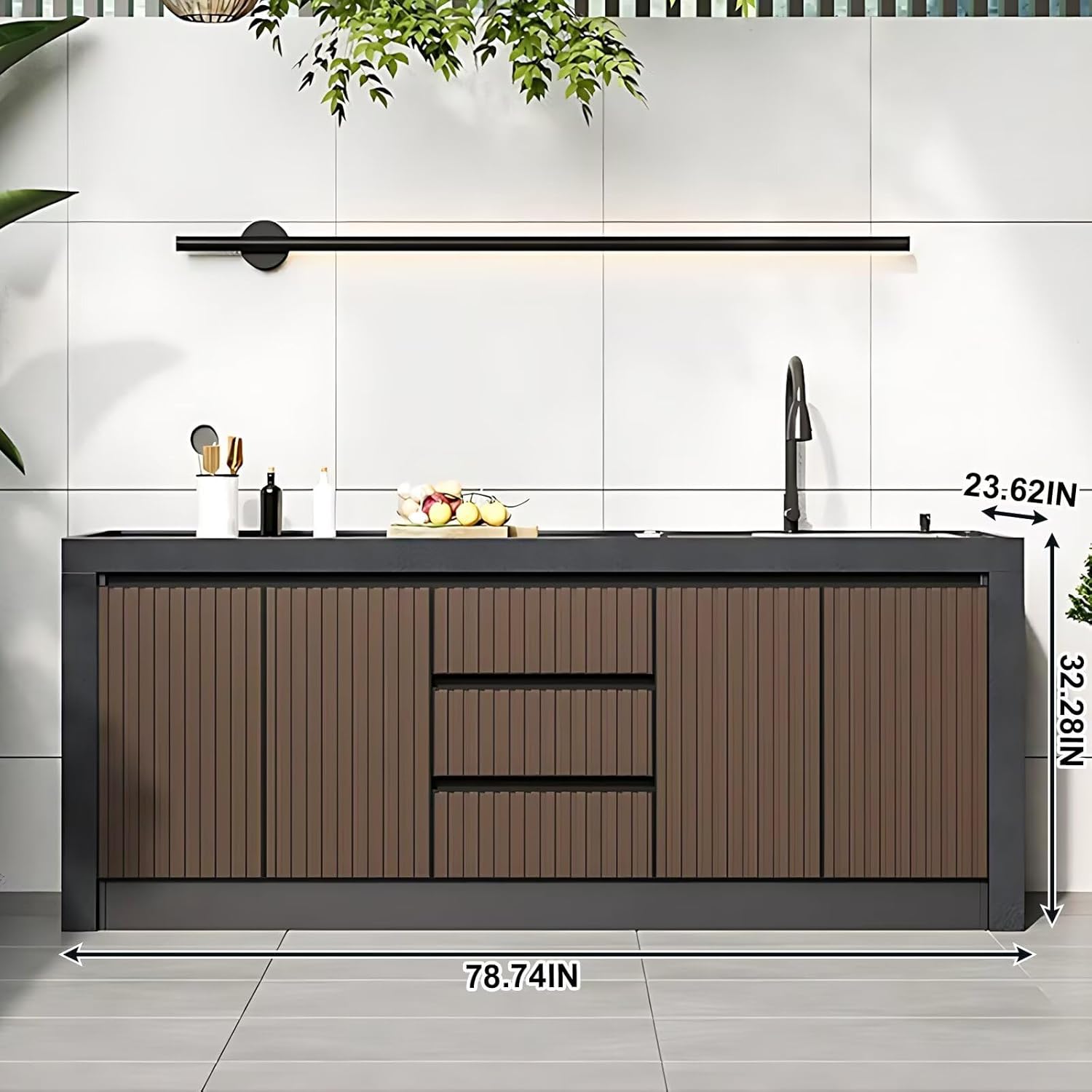 Aihm-Lon Outdoor Kitchen Storage Cabinet with Doors and Shelves 78.74"-86.61"