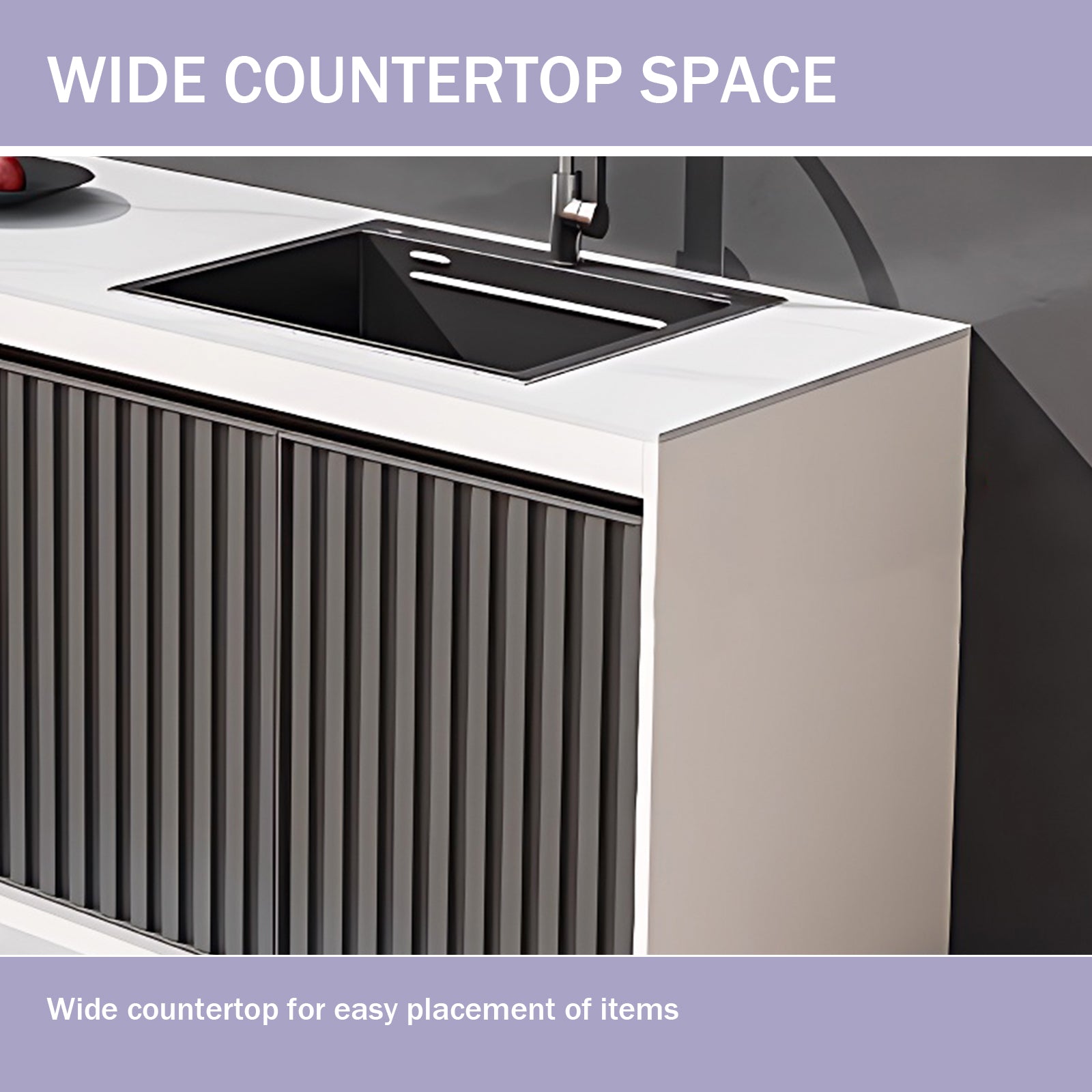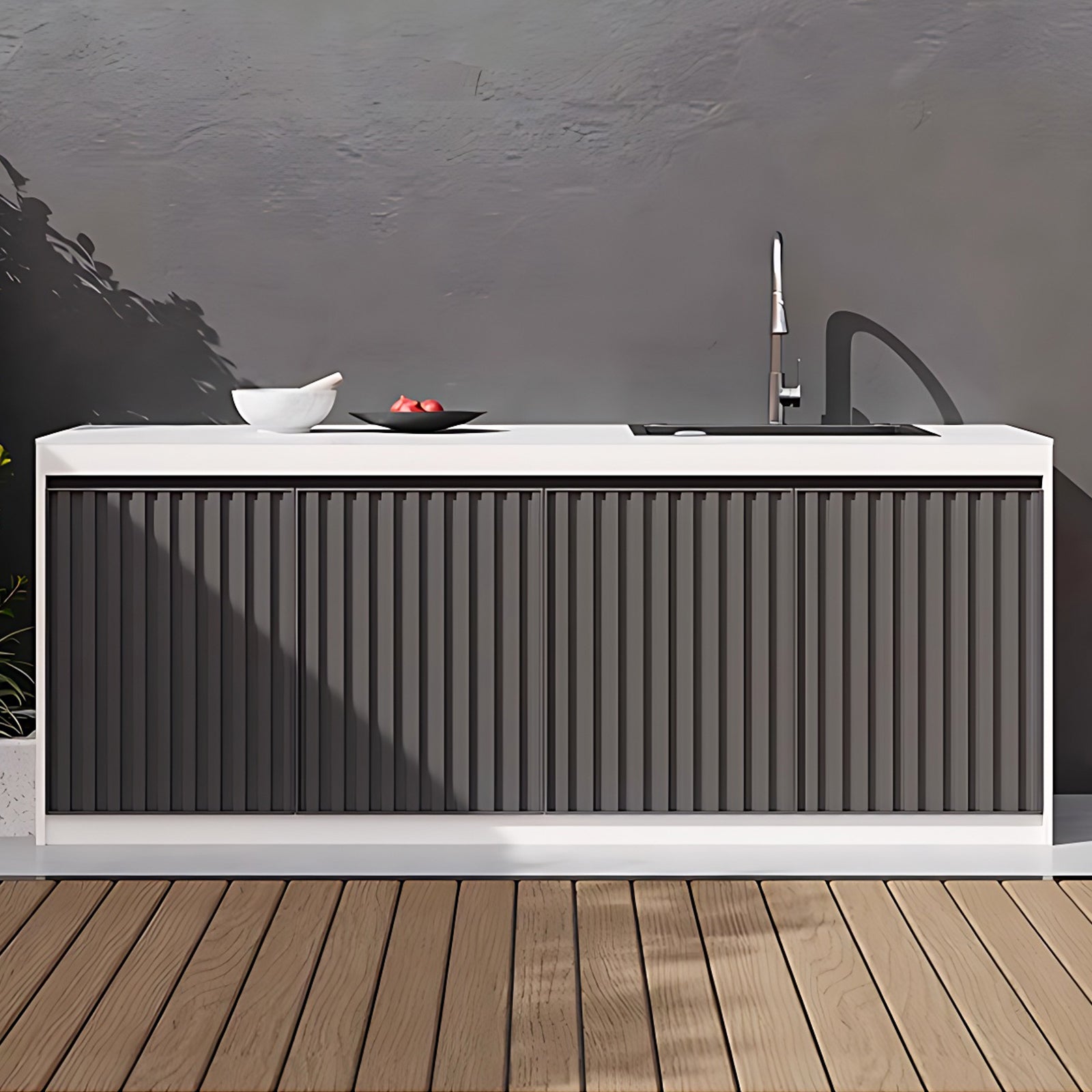 Light Luxury Style: white countertop with dark gray striped cabinets, simple and elegant, can be integrated with a variety of outdoor scenes, adding a sense of fashion and refinement, and enhancing the style of the overall outdoor space