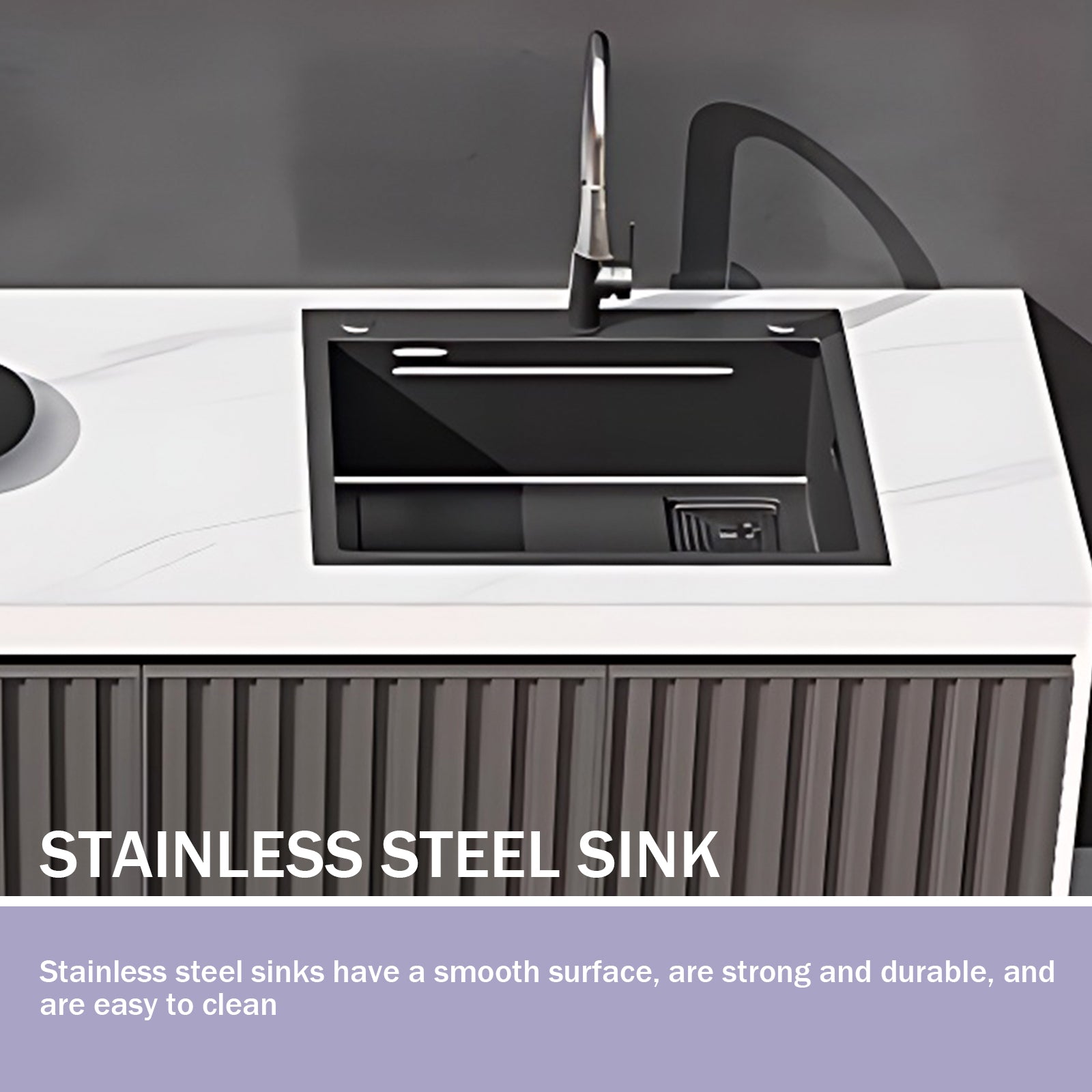 Stainless Steel Sink: the surface of stainless steel is smooth, which saves time and effort when cleaning; can withstand greater pressure and is not easy to be damaged;the tap water is smooth and It is more convenient to deepen and thicken the sink