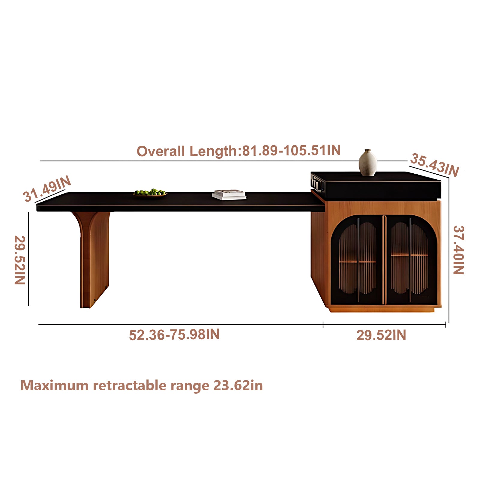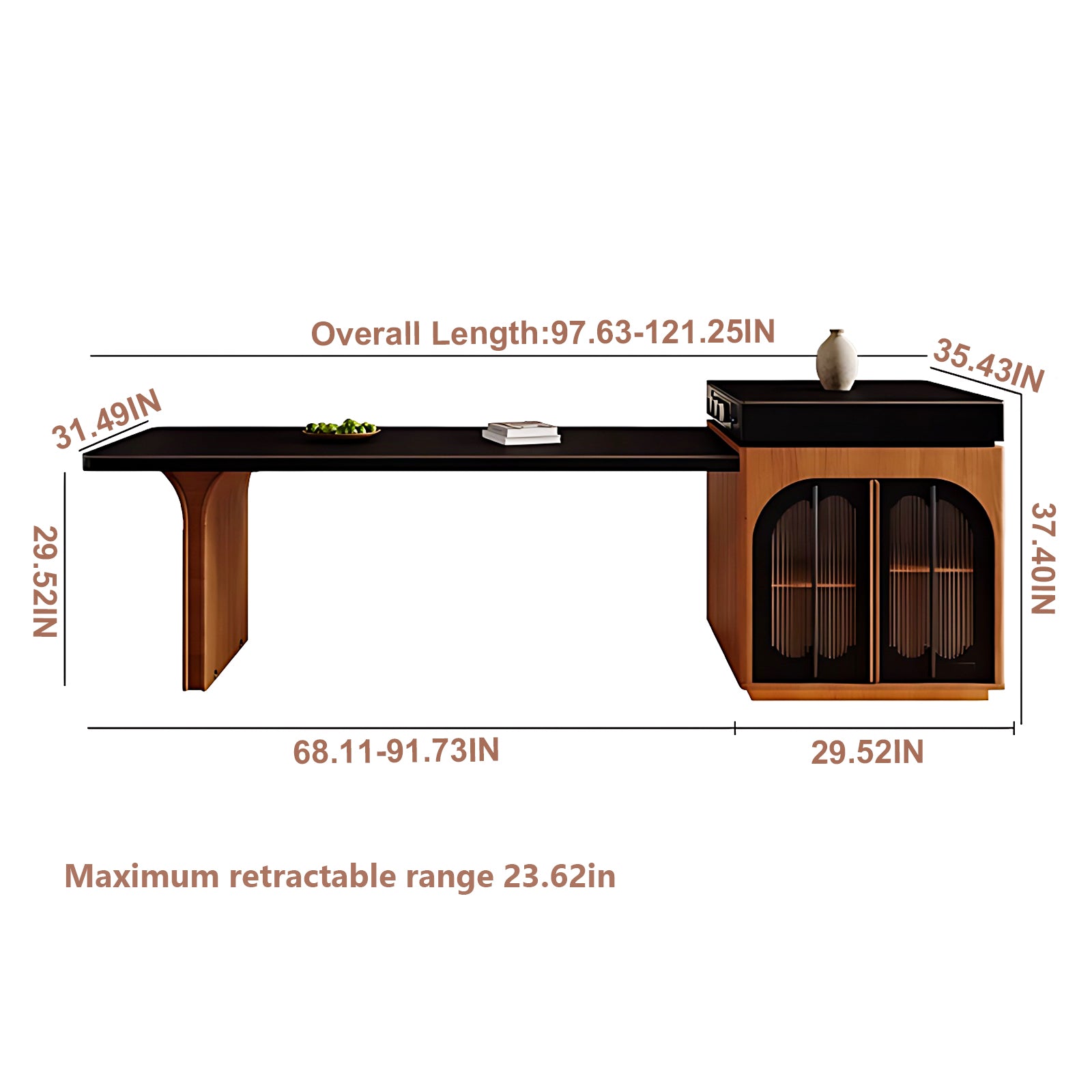 Aihm-Lon Black-Brown Kitchen Island with Extendable Table 74.01"-97.63"