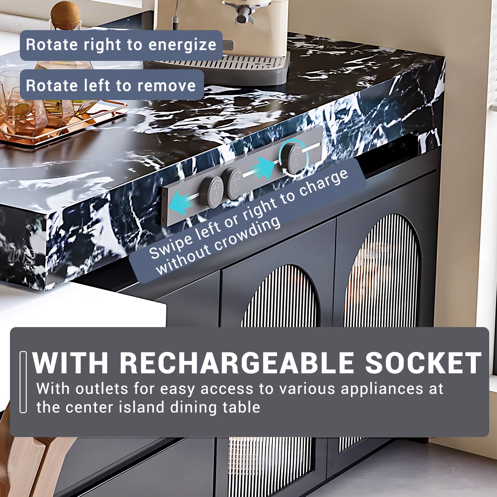 Unique Pattern Design: The island countertop features a unique pattern, highlighting its uniqueness. The cabinets feature smooth striped glass panels. The solid wood legs add a charming retro style, perfectly blending modern and classic aesthetics