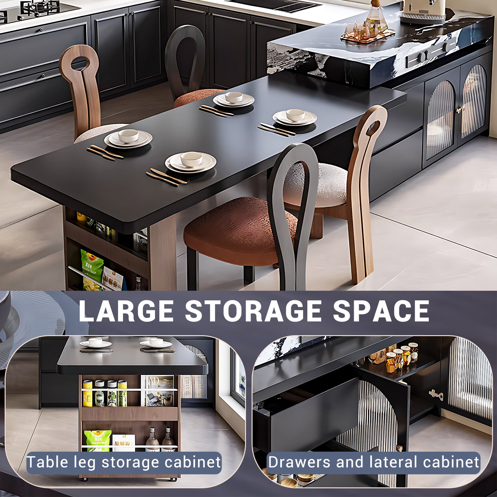 Aihm-Lon Kitchen Island with Extendable Table Side Shelf Rack 39.37"-62.99"