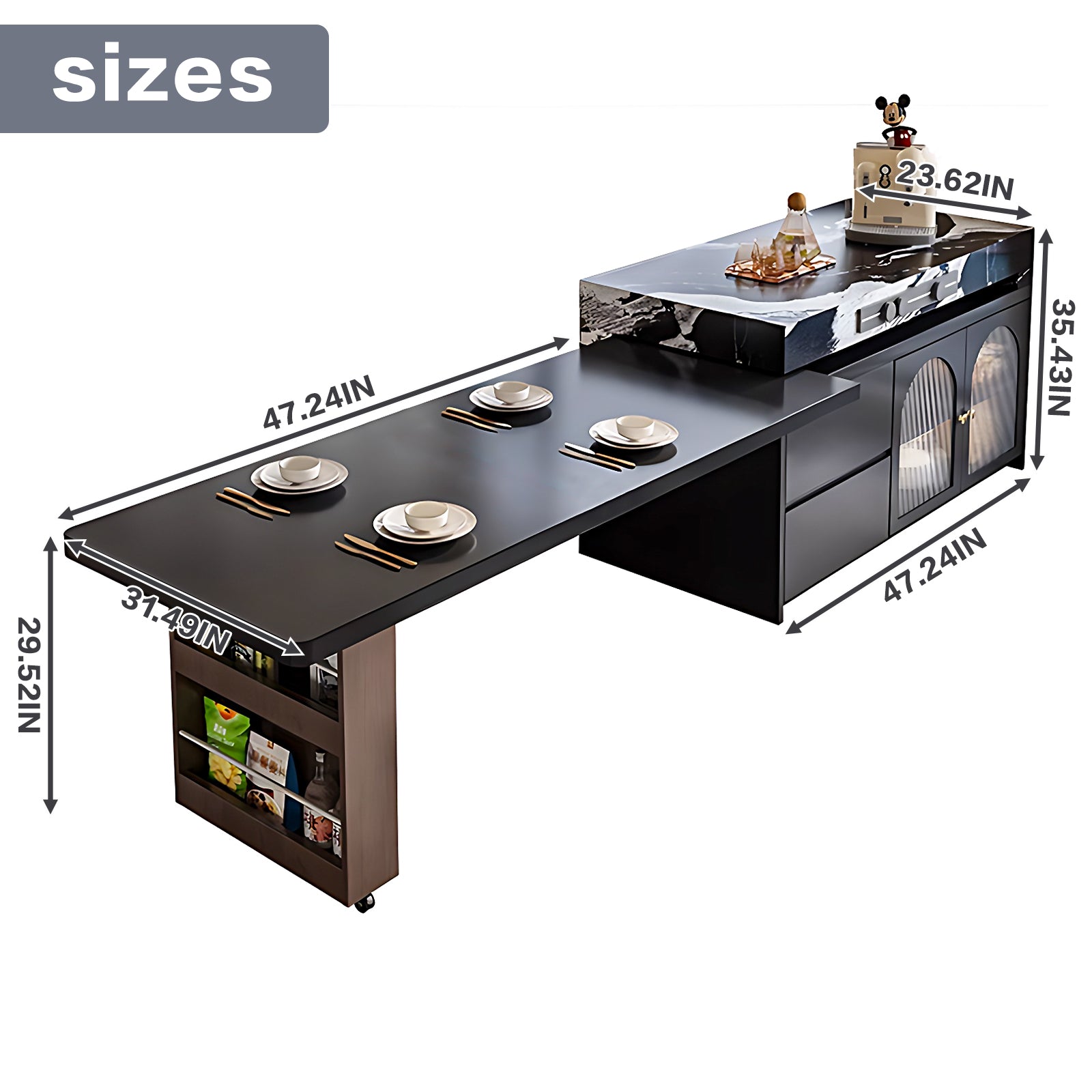 Extendable Dining Table: Our extendable dining table offers unparalleled flexibility with a simple fold and unfold mechanism, making it easy to switch between multiple configurations. It retracts and stows smoothly, making it ideal for small apartments