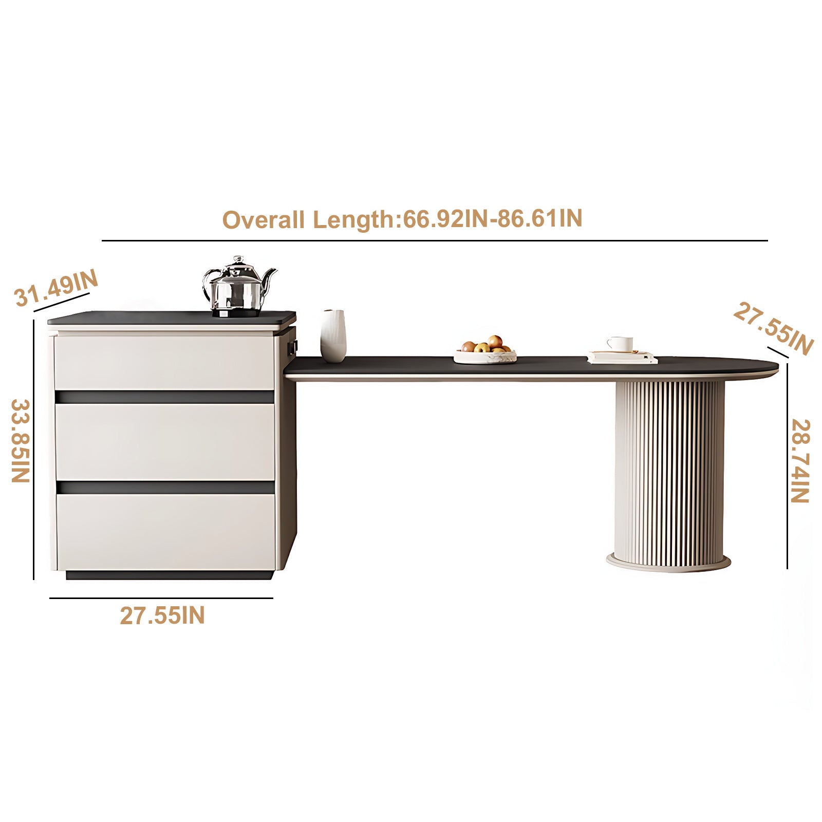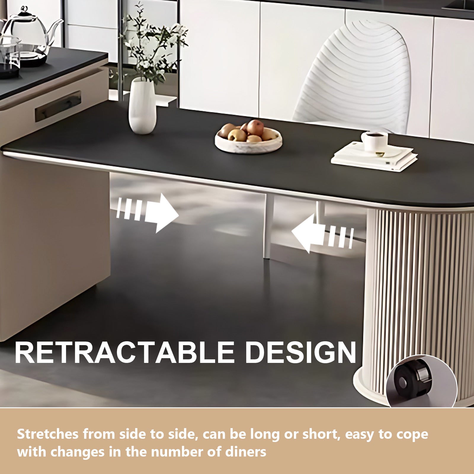 Retractable Dining Table: this model is an integrated design of dining table island and table;the table can flexibly adjust the size of the table according to the number of people eating, so it can be easily handled for both daily meals and parties