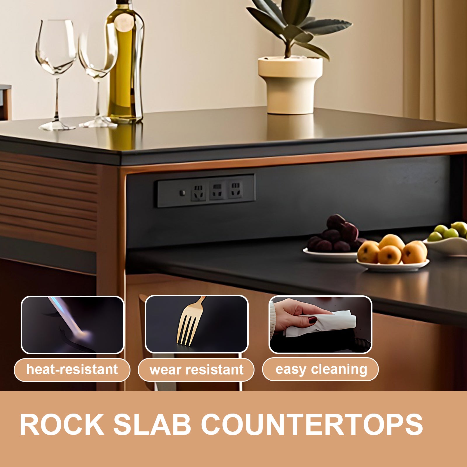 Embedded Socket:this socket is integrated with the island platform;the socket is embedded in the island platform, which is convenient to use and can supply power to household appliances or charge mobile phones