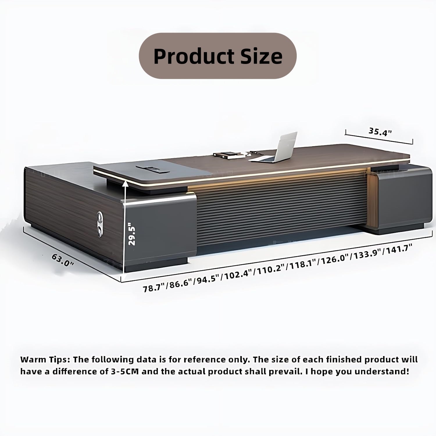 Aihm-Lon Contemporary Executive Desk with Side Storage Cabinet 78.7"-141.7"
