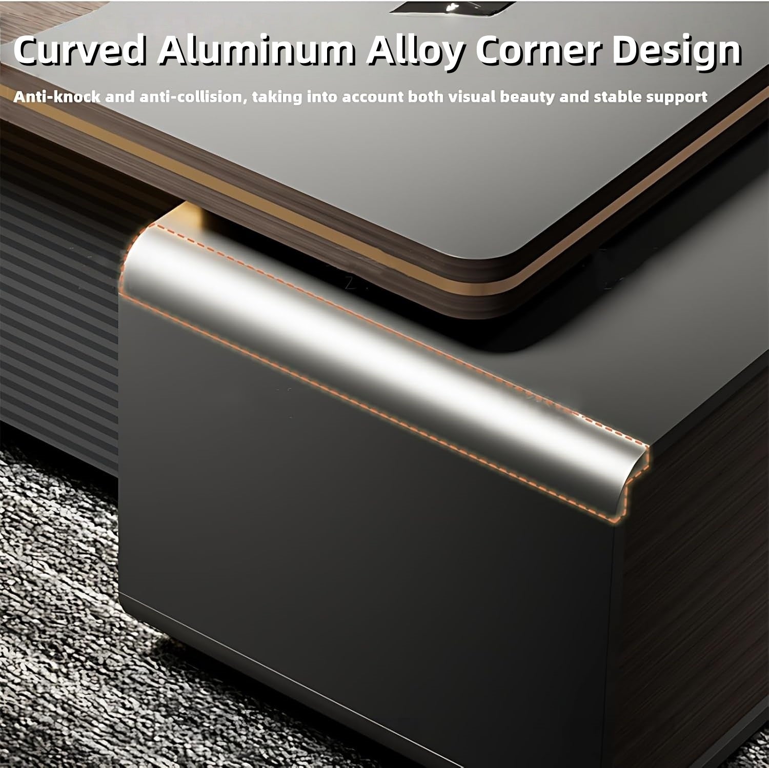 Intelligent & Thoughtful Design: This premium L-shaped office desk combines smart functionality with elegant details to enhance your workspace. The integrated cable management system features a multi-functional power box to organize wires while providing convenient charging access. Durable drawers offer refined storage with lasting performance, while the built-in LED lighting creates an eye-friendly ambiance to boost productivity.