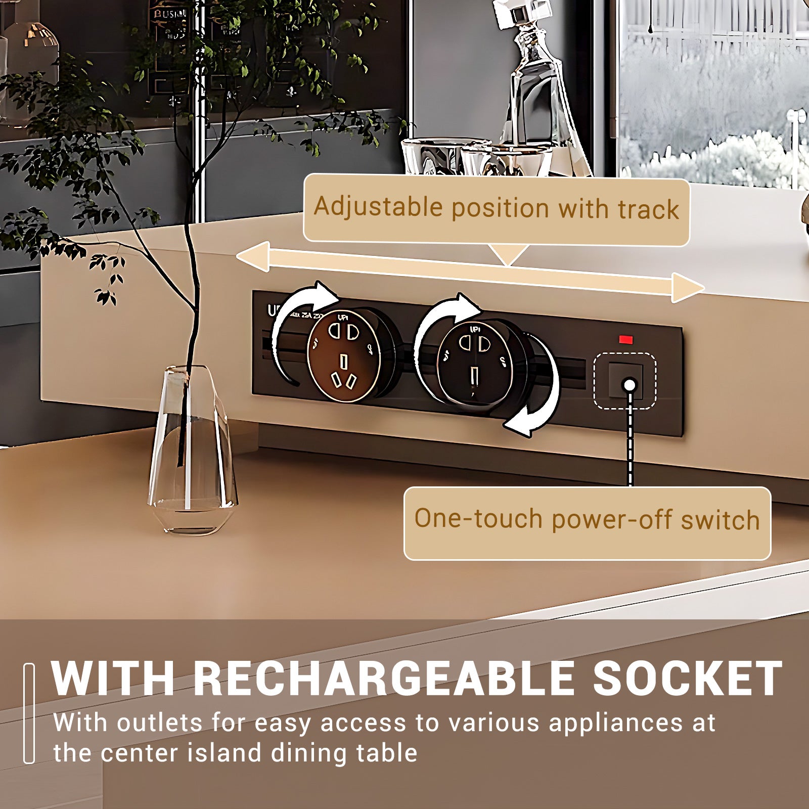 Multifunctionality: It is carefully equipped with sockets that can easily and quickly charge electronic devices, improving convenience. The island table is equipped with wheels for smooth and easy movement to meet various needs and arrangements