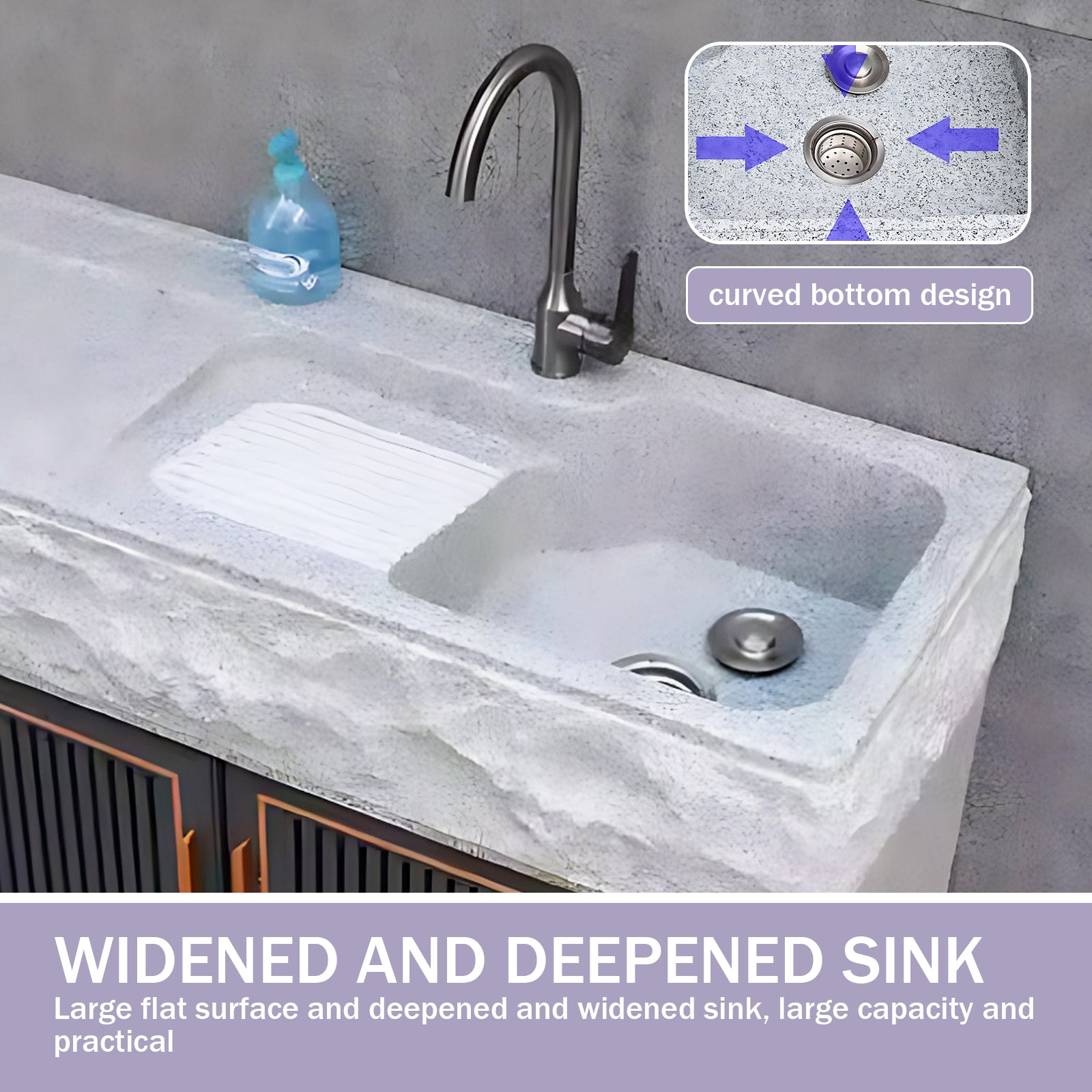 Integrated Sink: the sink and the table top are built in one piece, with smooth surface, which saves time and effort when cleaning; can withstand greater pressure and is not easy to be damaged; the sink is deepened and thickened with large capacity